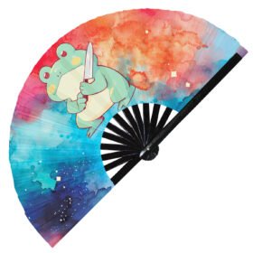 Cute Murderous Frog With Knife Violence Toad – Clack Folding Rave & Festival Hand Fan