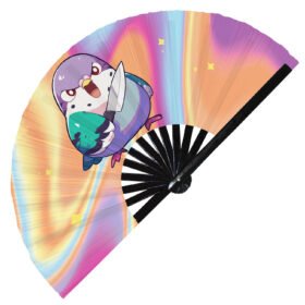 Cute Murderous Parrot With Knife Violence Parakeet – Clack Folding Rave & Festival Hand Fan