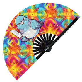 Cute Murderous Pigeon With Knife Violence Bird – Clack Folding Rave & Festival Hand Fan