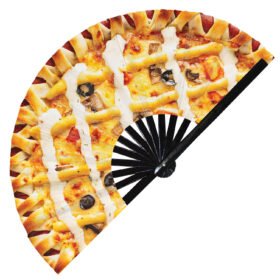 Pizza Top View Realistic Cheesy Slice – Clack Folding Rave & Festival Hand Fan