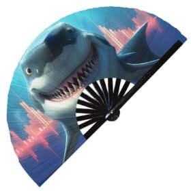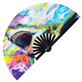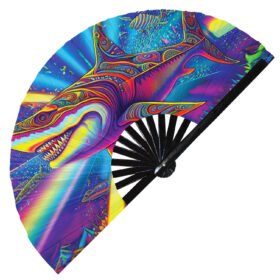 Psychedelic Trippy Shark Rainbow – Clack Folding Rave & Festival Hand Fan