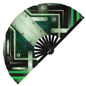 Futuristic Cyberpunk Techno Mecha – Clack Folding Rave & Festival Hand Fan