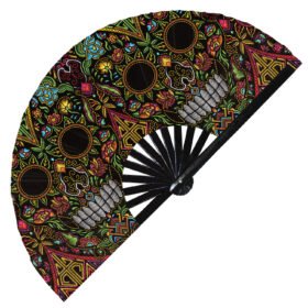 Dia De Muertos Colorful Huichol Day of the Dead – Clack Folding Rave & Festival Hand Fan