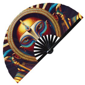 Egyptian Pharaoh Trippy Psychedelic Anubis Ra – Clack Folding Rave & Festival Hand Fan