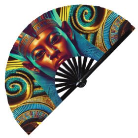 Eygptian Pharaoh Pyramid Hieroglyphics Theme – Clack Folding Rave & Festival Hand Fan