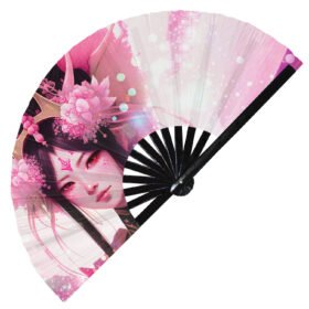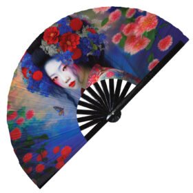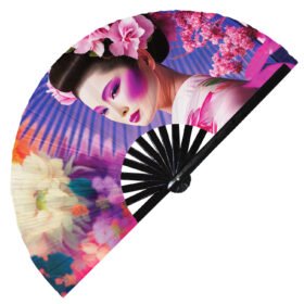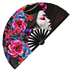 Japanese Beautiful Colorful Geisha – Clack Folding Rave & Festival Hand Fan