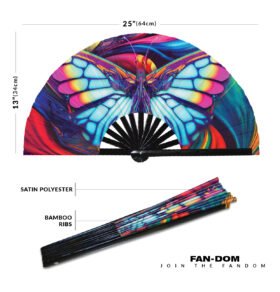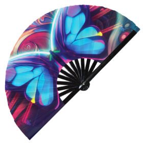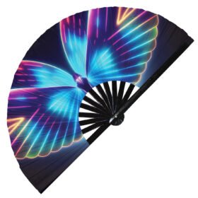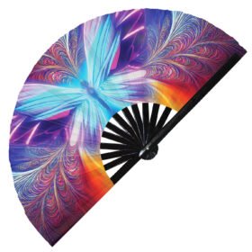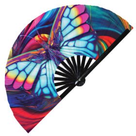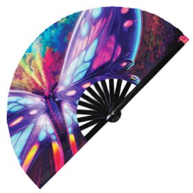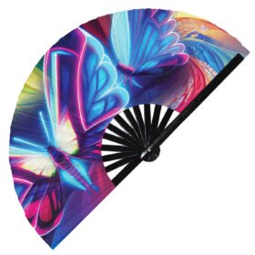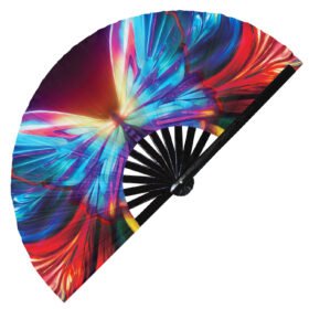 Neon Trippy Butterfly Psychedelic Rainbow – Clack Folding Rave & Festival Hand Fan