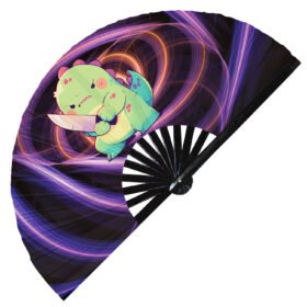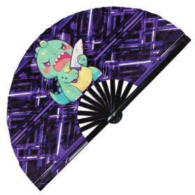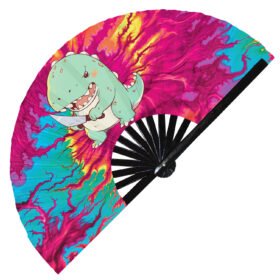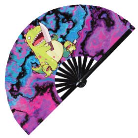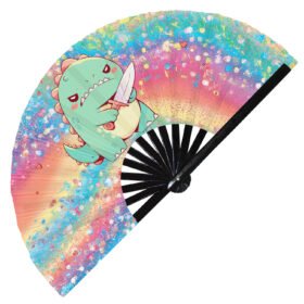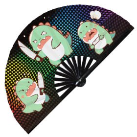 Cute Murderous T-rex With Knife Violence Dinosaur – Clack Folding Rave & Festival Hand Fan