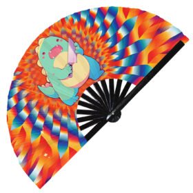Trippy T-rex Colorful Psychedelic Realistic Dinosaur – Clack Folding Rave & Festival Hand Fan