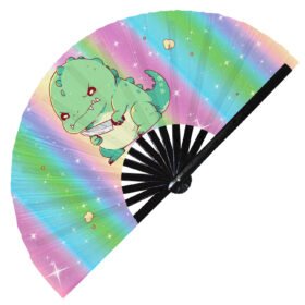 T-rex Colorful Realistic Dinosaur – Clack Folding Rave & Festival Hand Fan