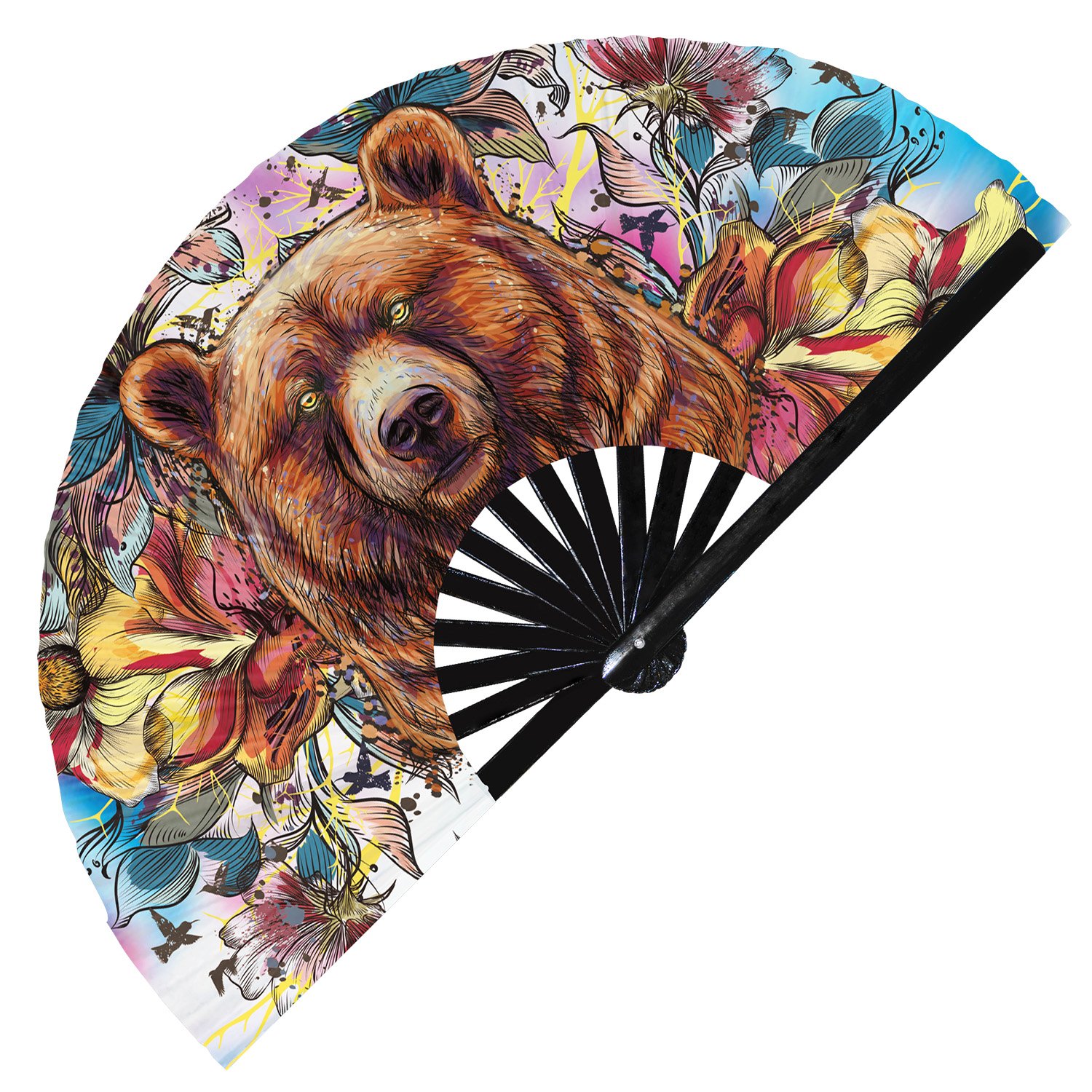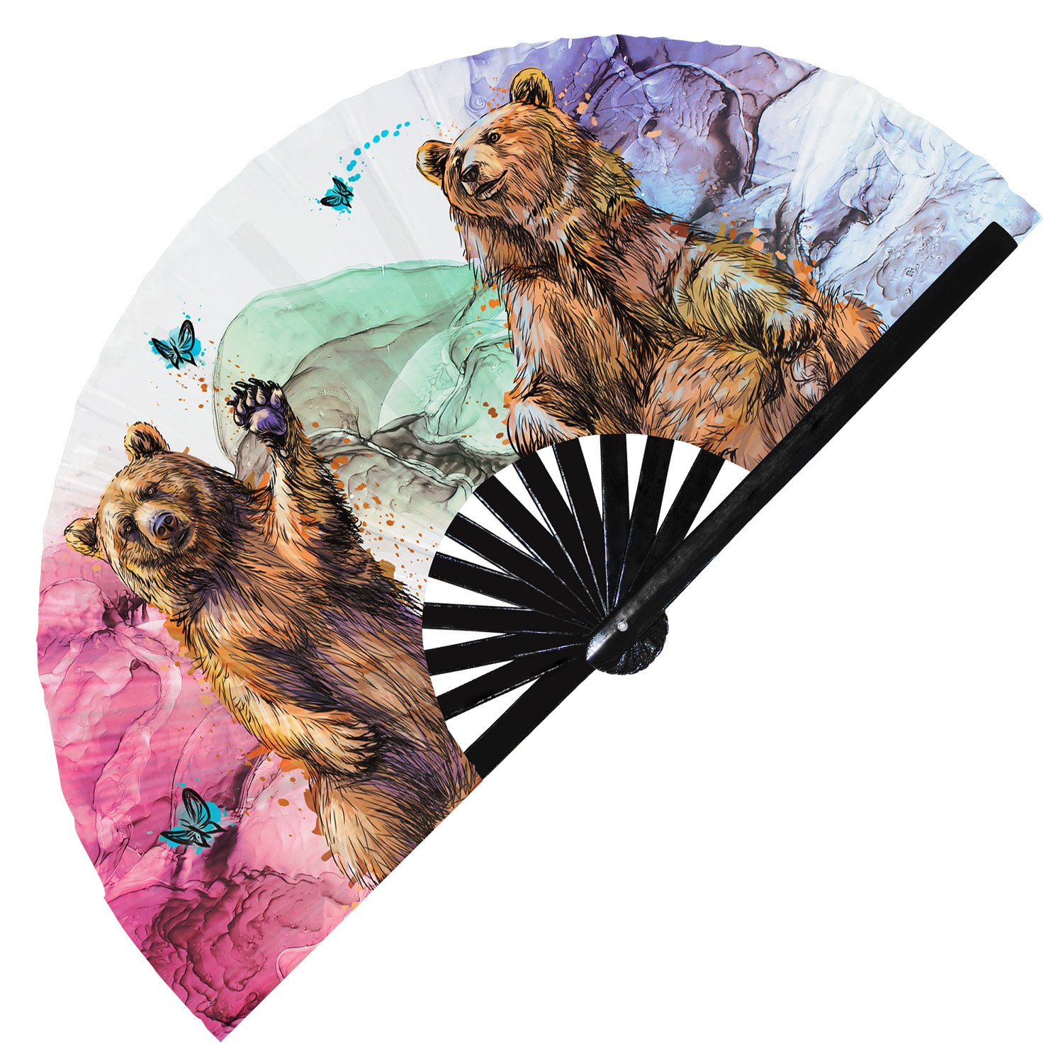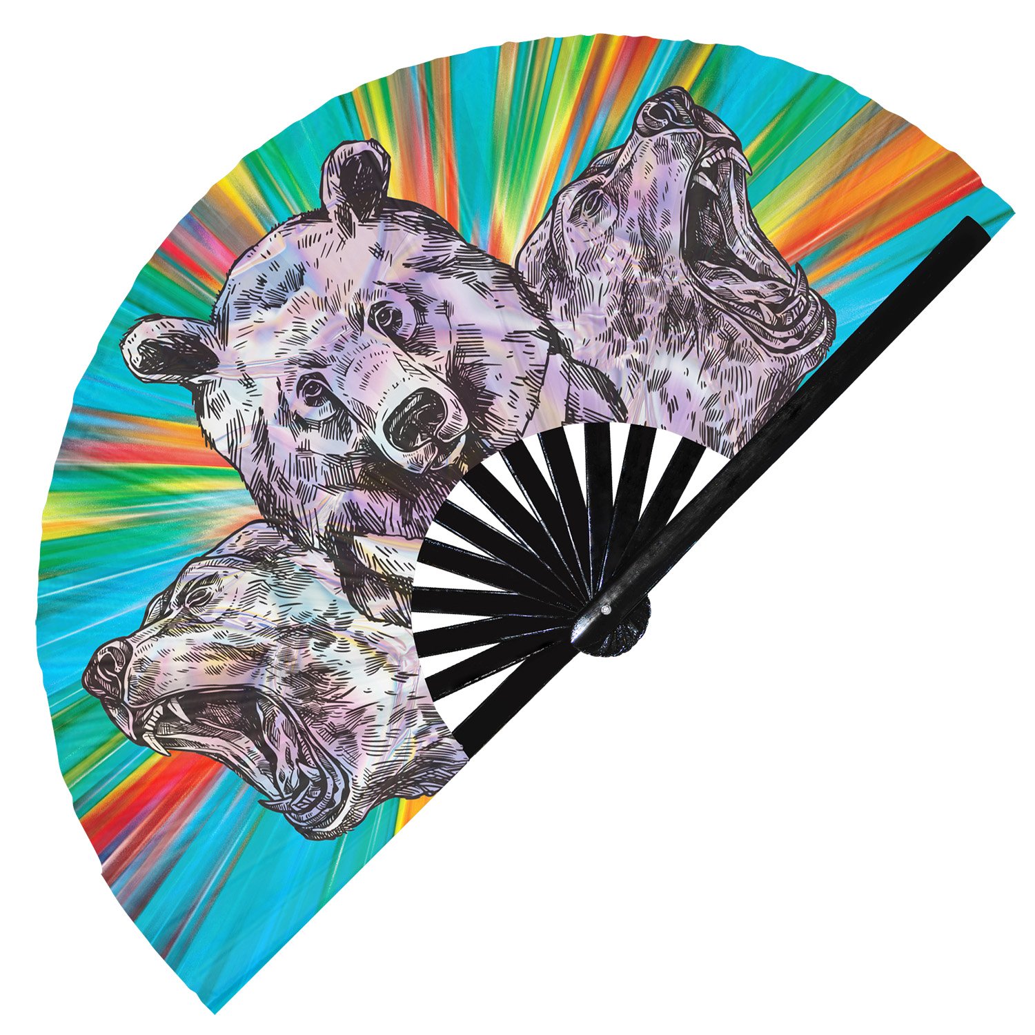 Colorful Grizzly Bear – Clack Folding Rave & Festival Hand Fan
