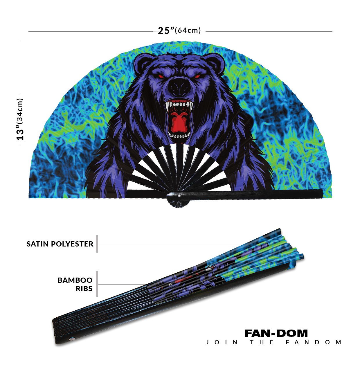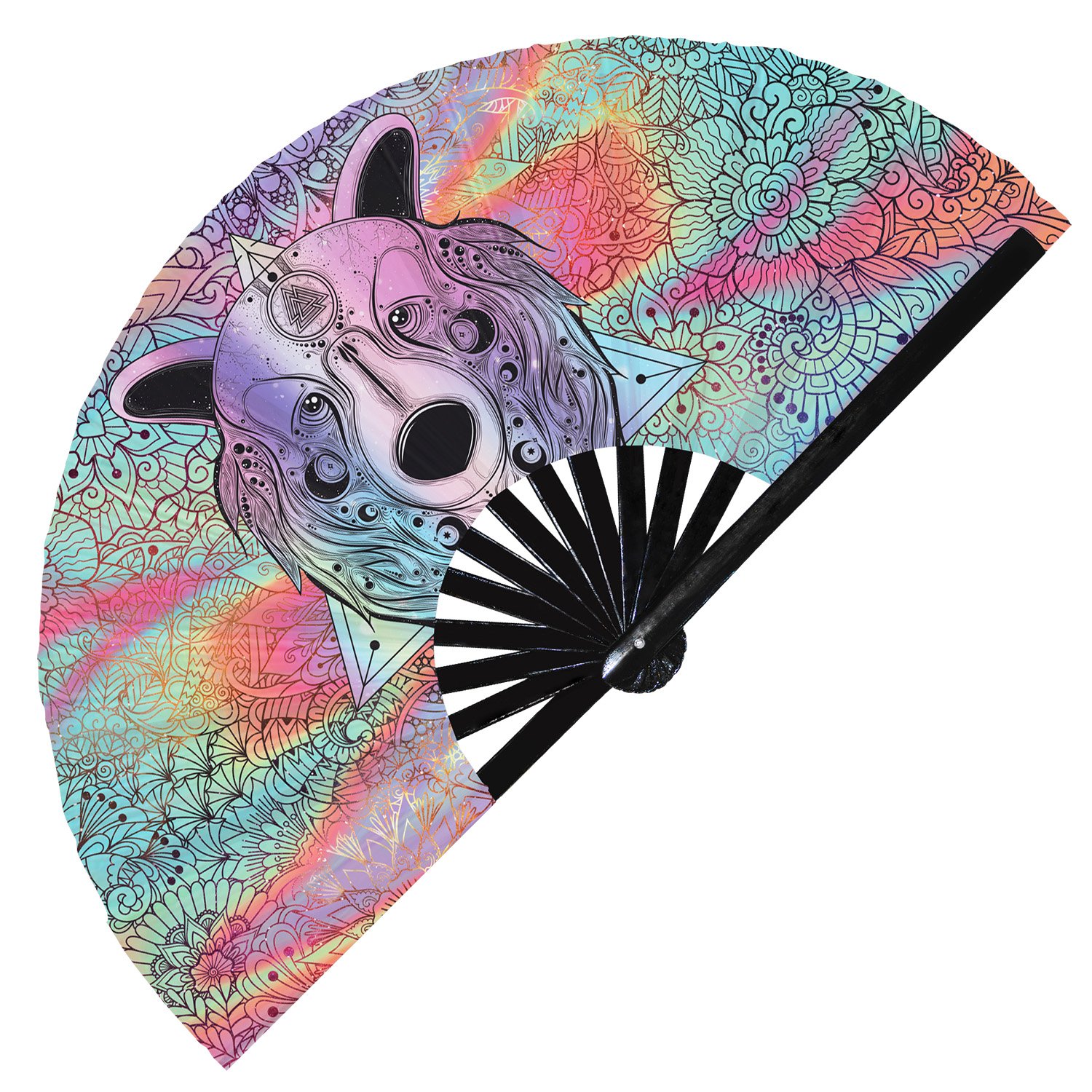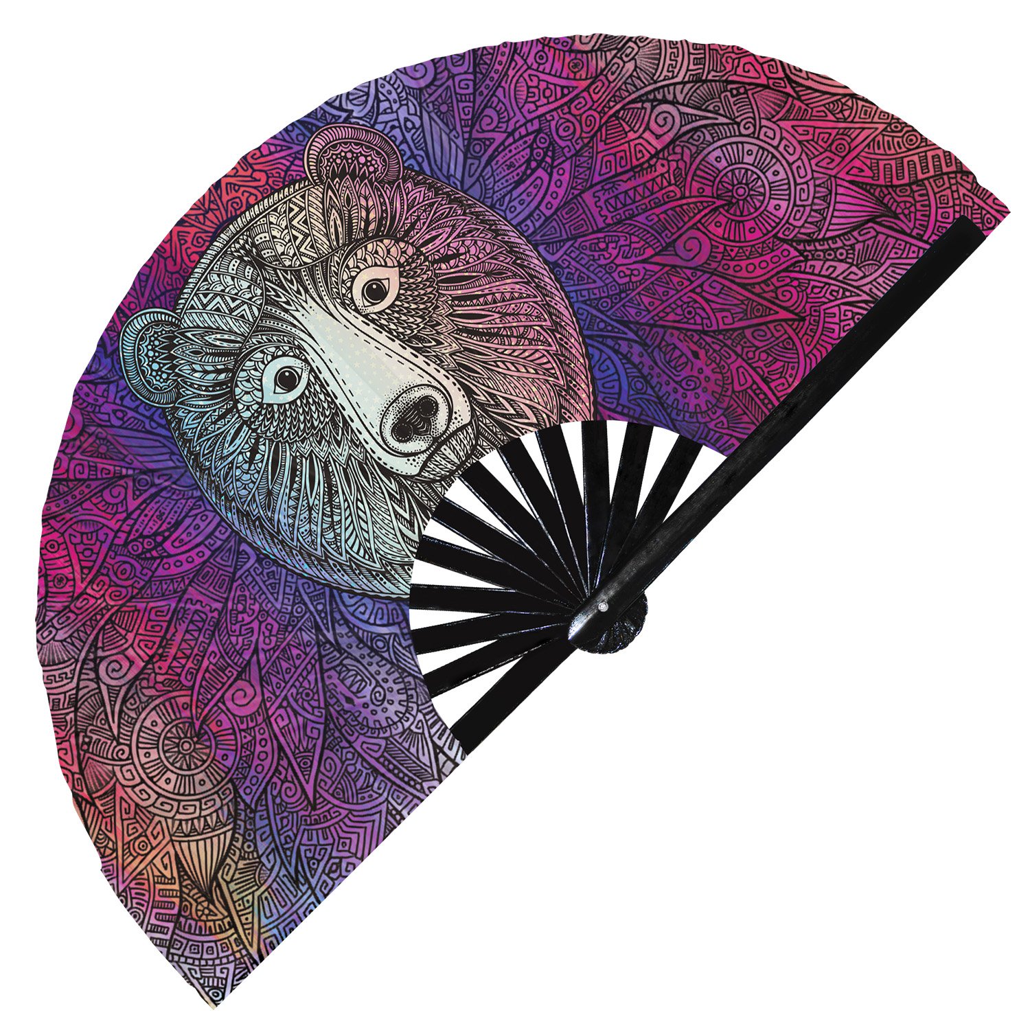 Colorful Grizzly Bear – Clack Folding Rave & Festival Hand Fan