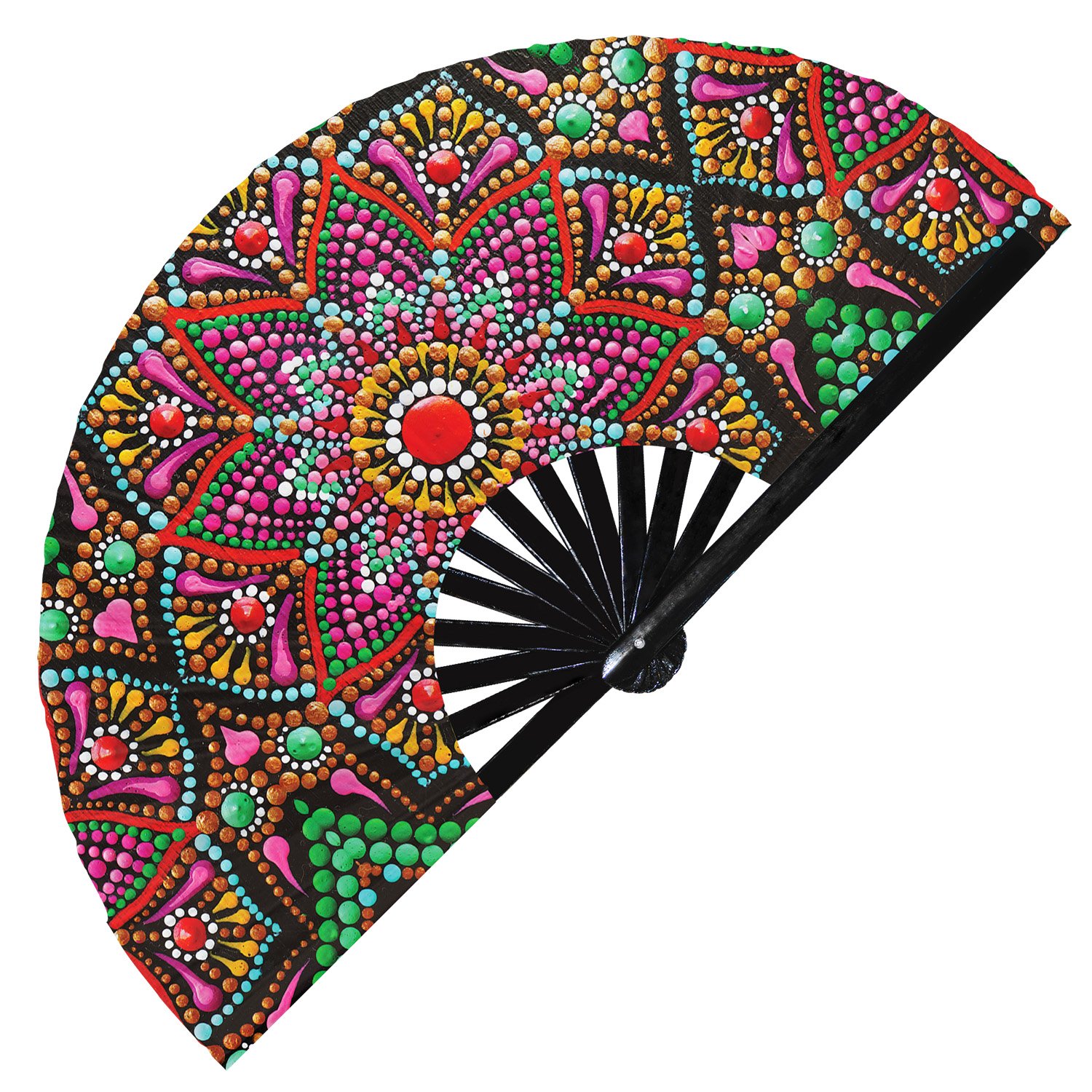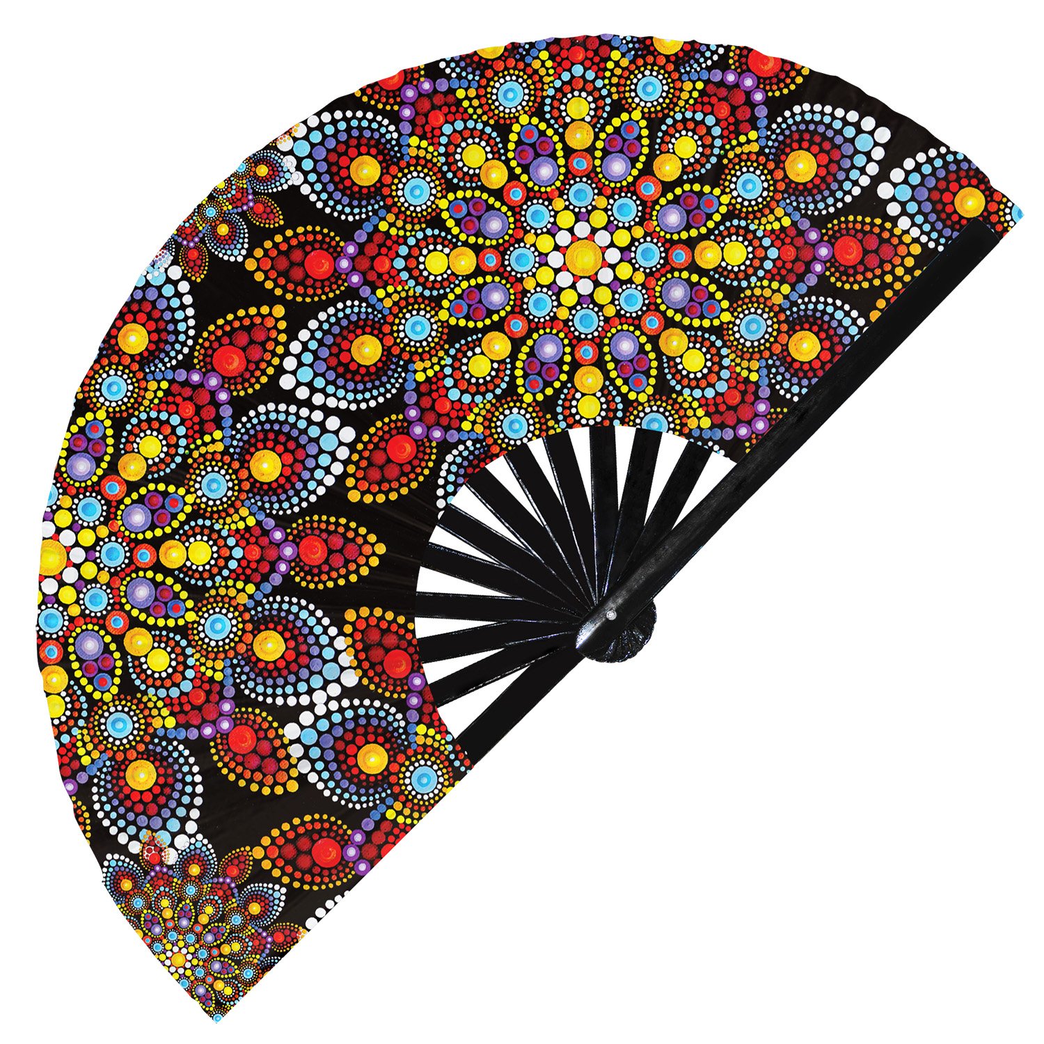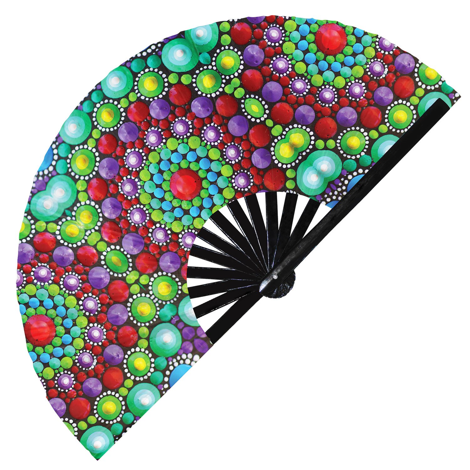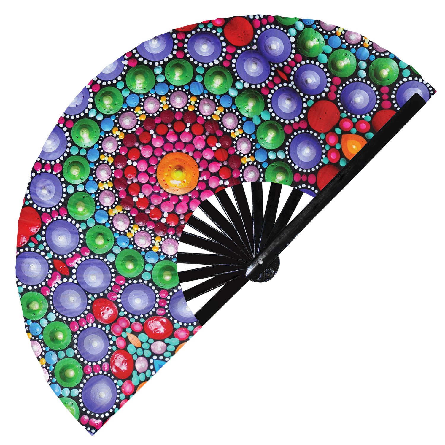 Colorful Mandala Dot Art Rainbow Painting – Clack Folding Rave & Festival Hand Fan