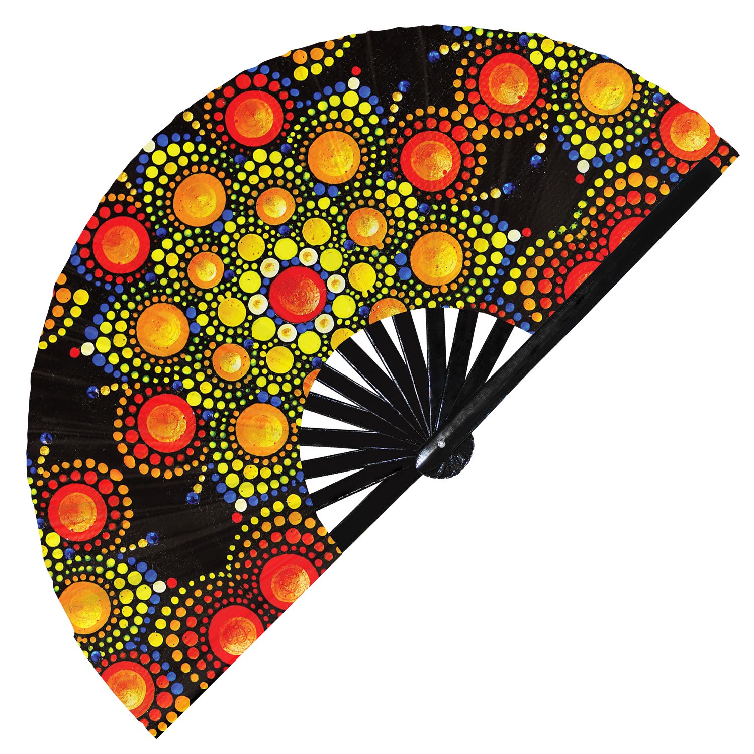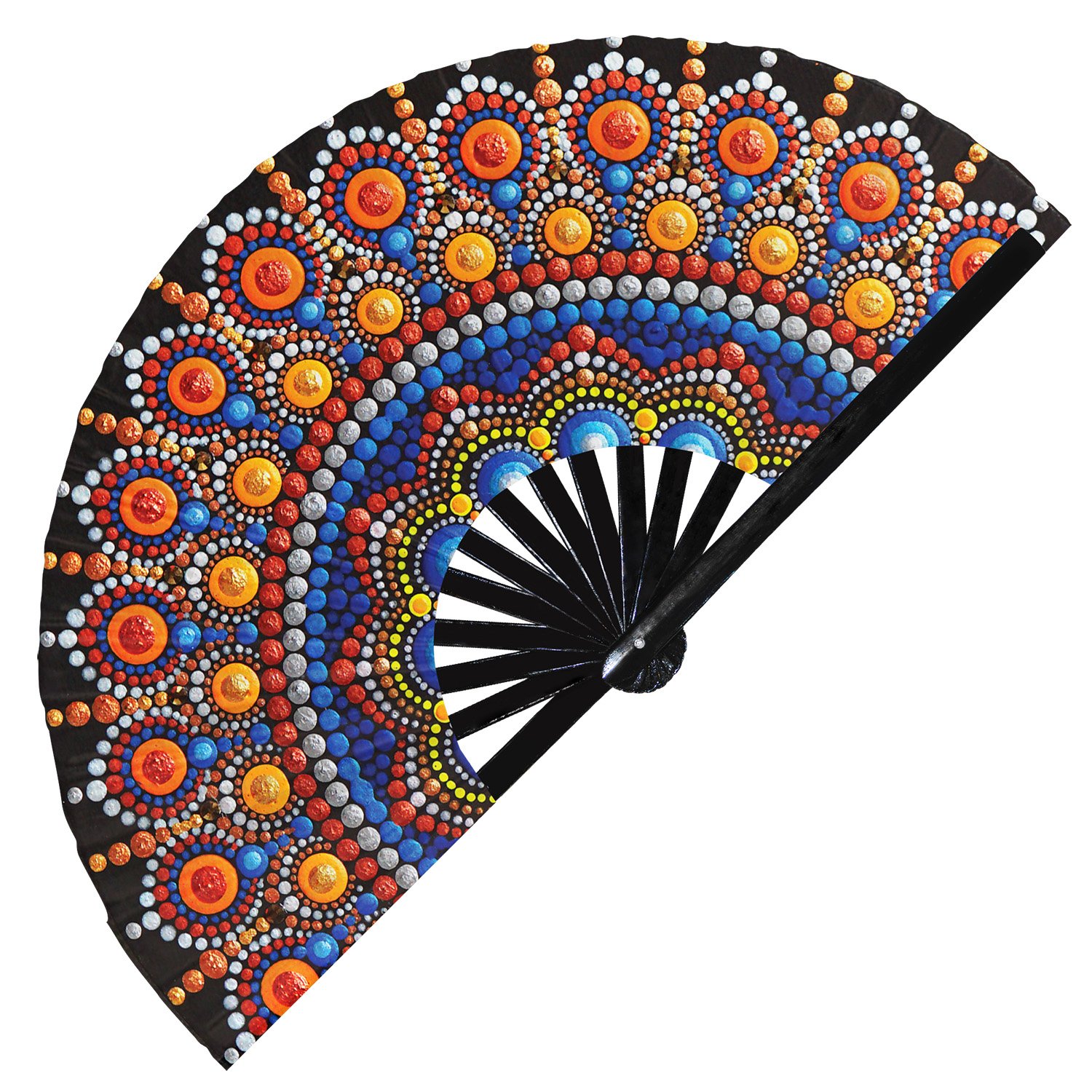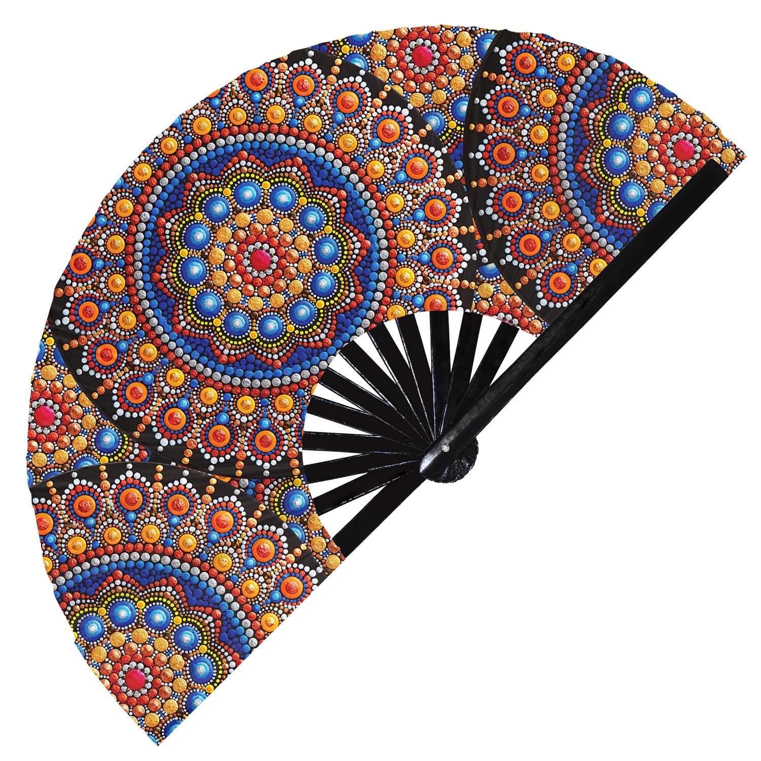 Colorful Mandala Dot Art Rainbow Painting – Clack Folding Rave & Festival Hand Fan