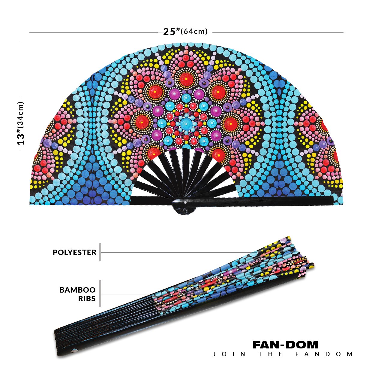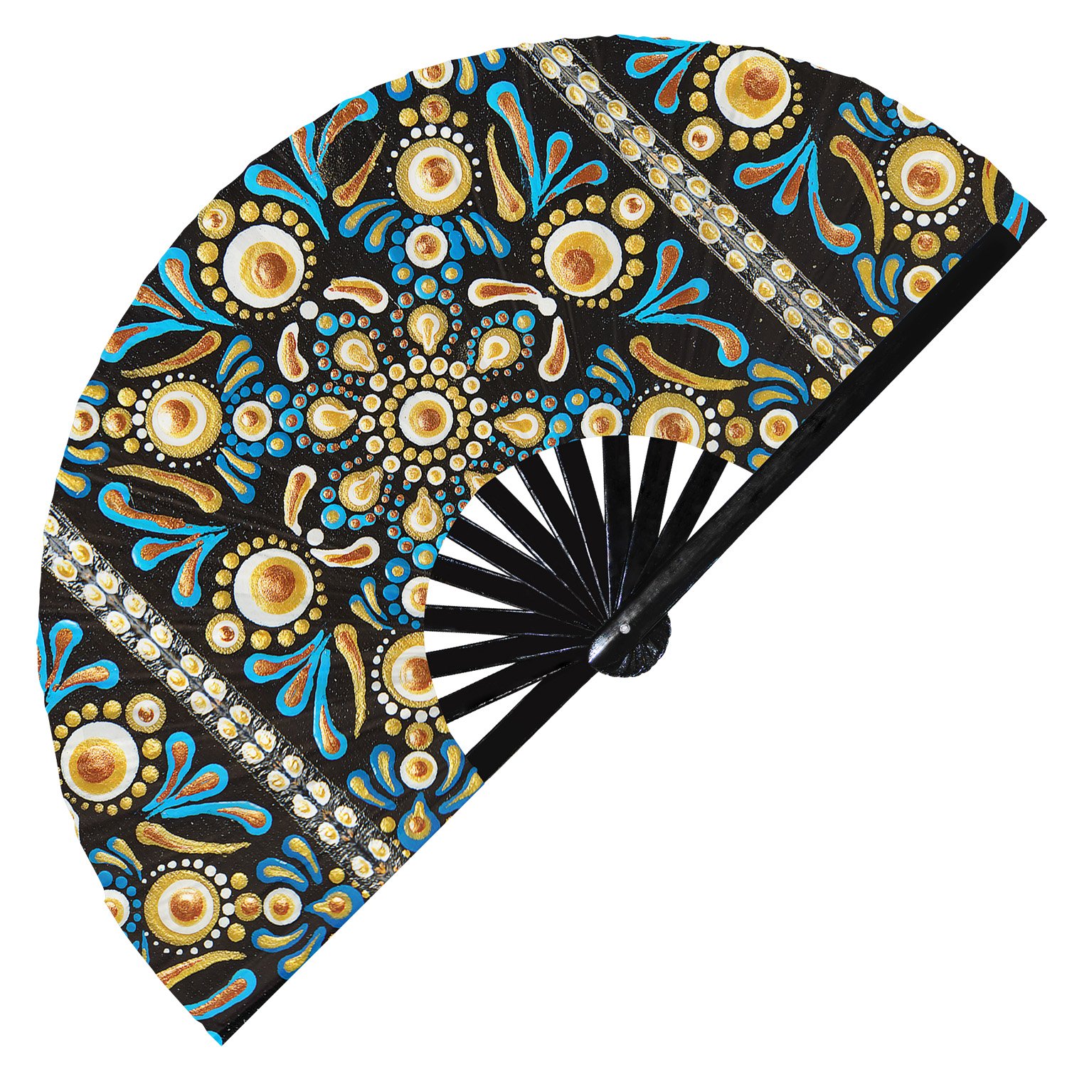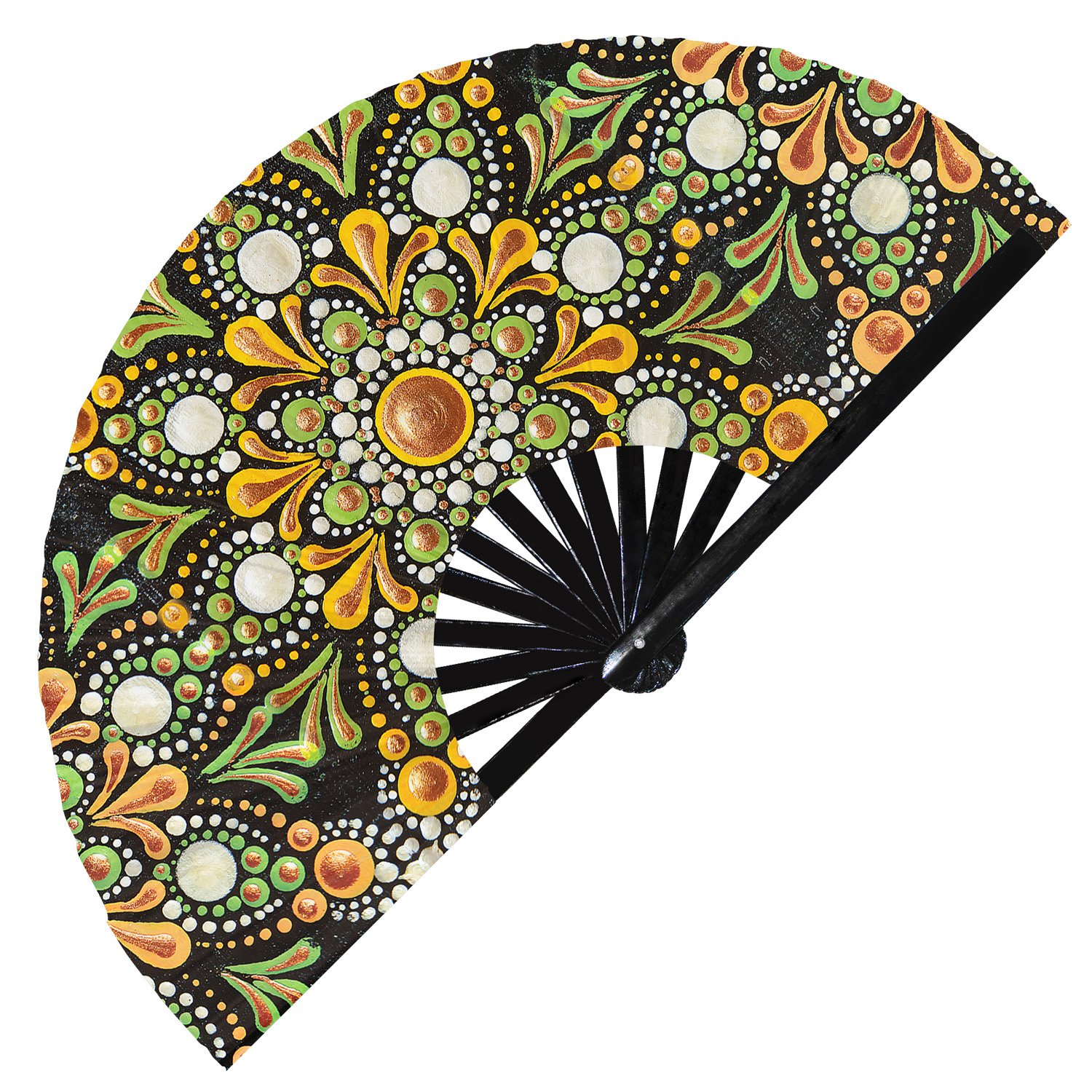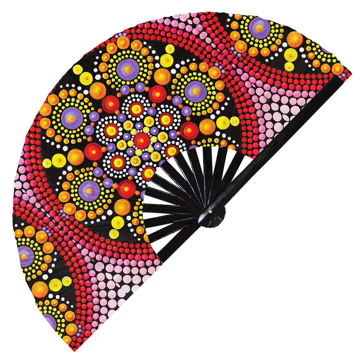 Colorful Mandala Dot Art Rainbow Painting – Clack Folding Rave & Festival Hand Fan