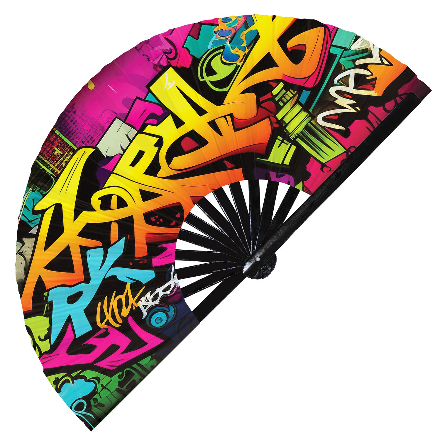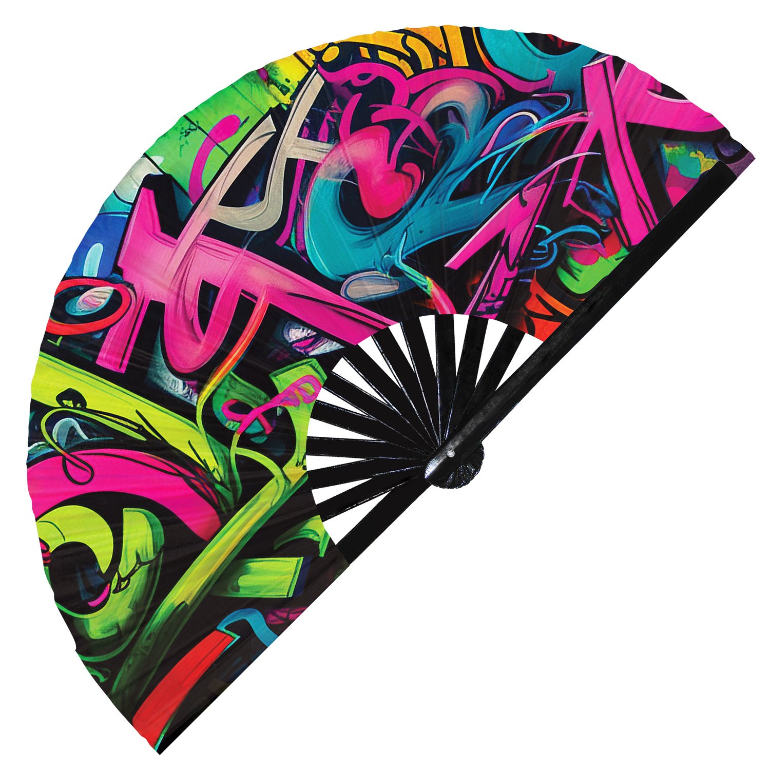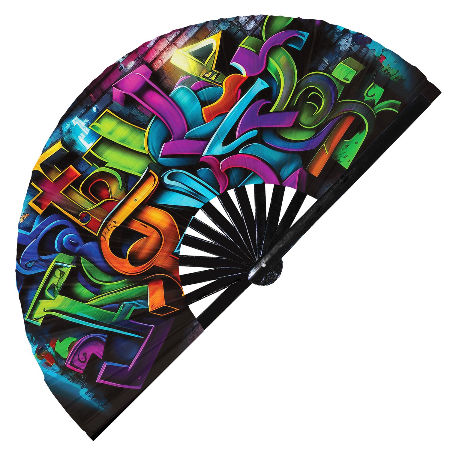 Colorful Neon Wall Art Graffiti Mural Rainbow Spray Paint – Clack Folding Rave & Festival Hand Fan