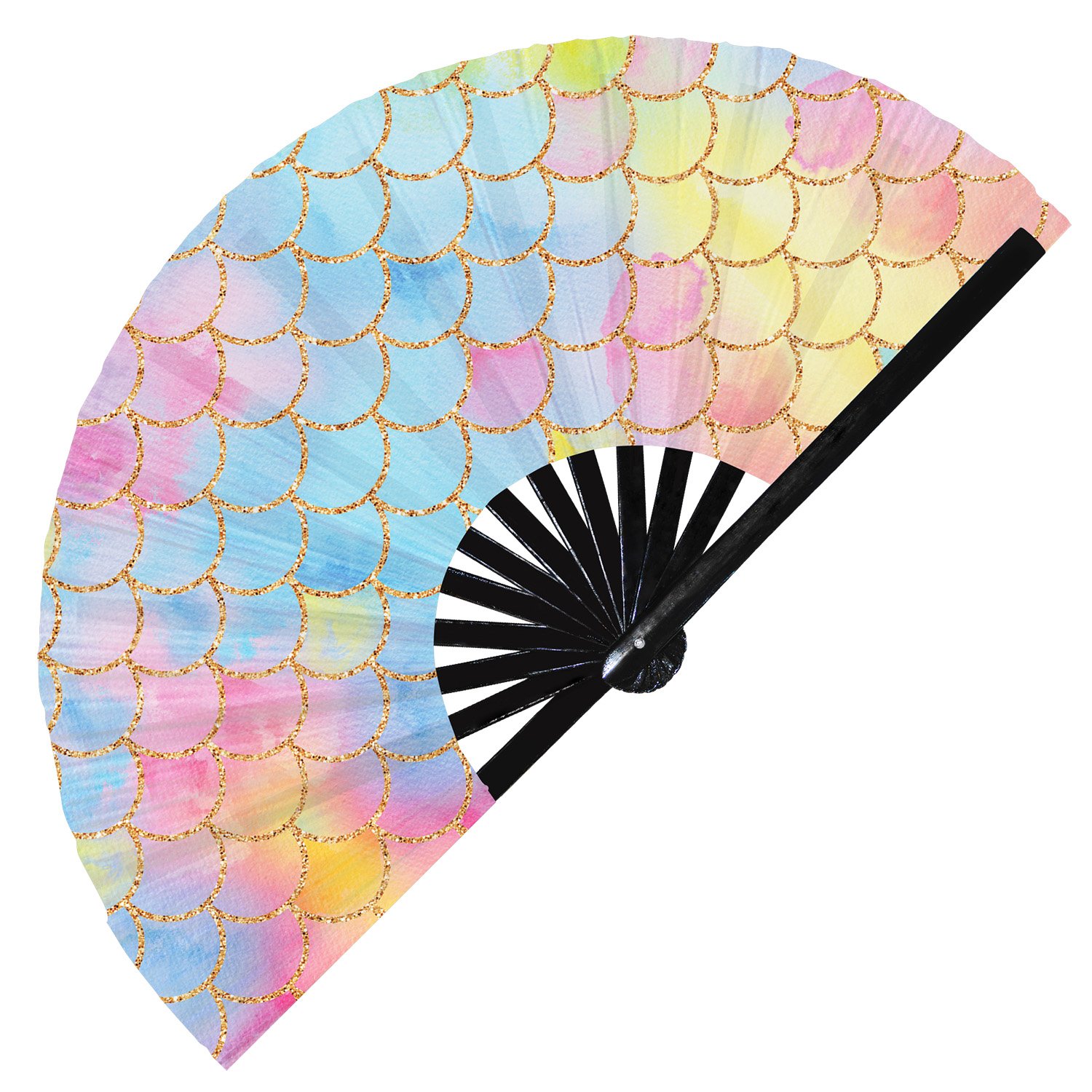 Colorful Rainbow Mermaid Scales – Clack Folding Rave & Festival Hand Fan