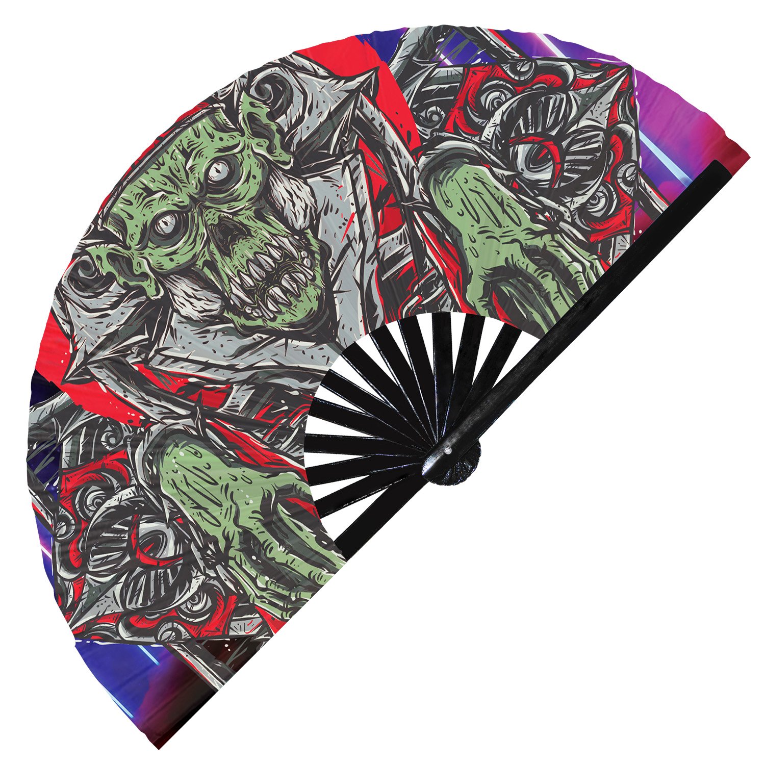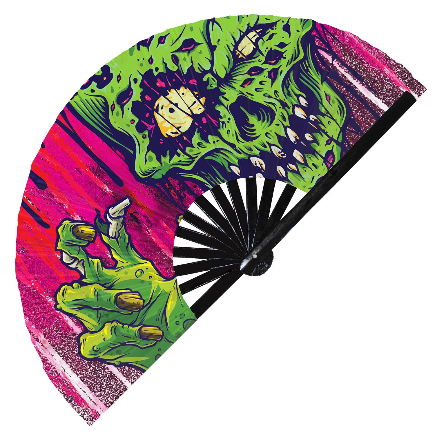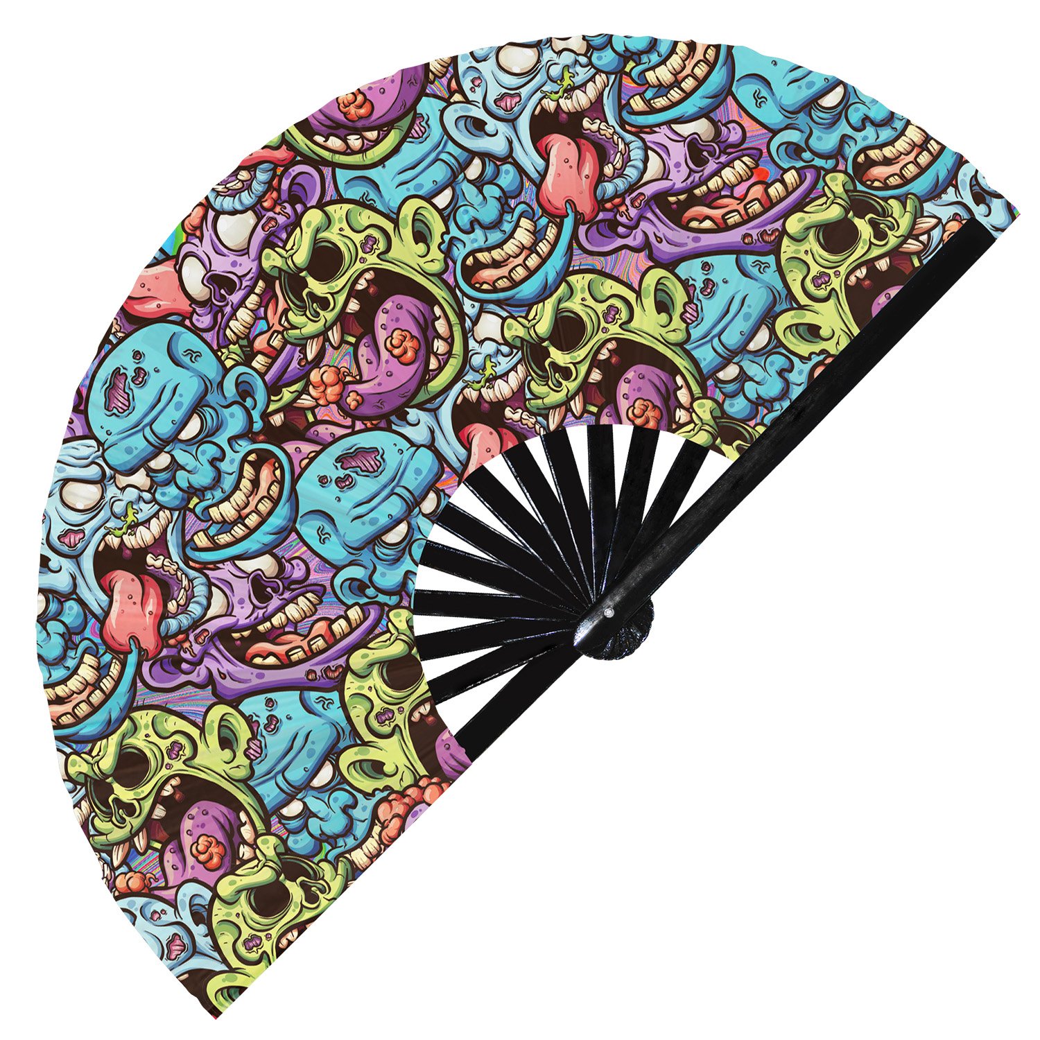 Colorful Zombie Psychedelic Neon Undead – Clack Folding Rave & Festival Hand Fan