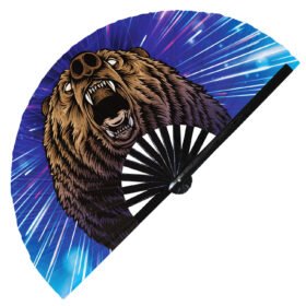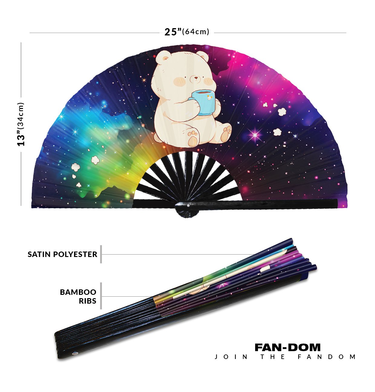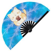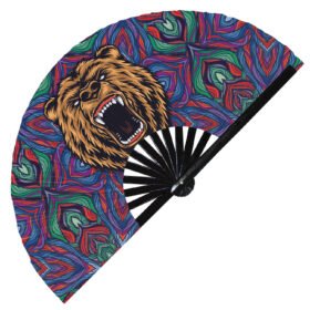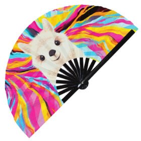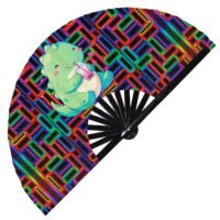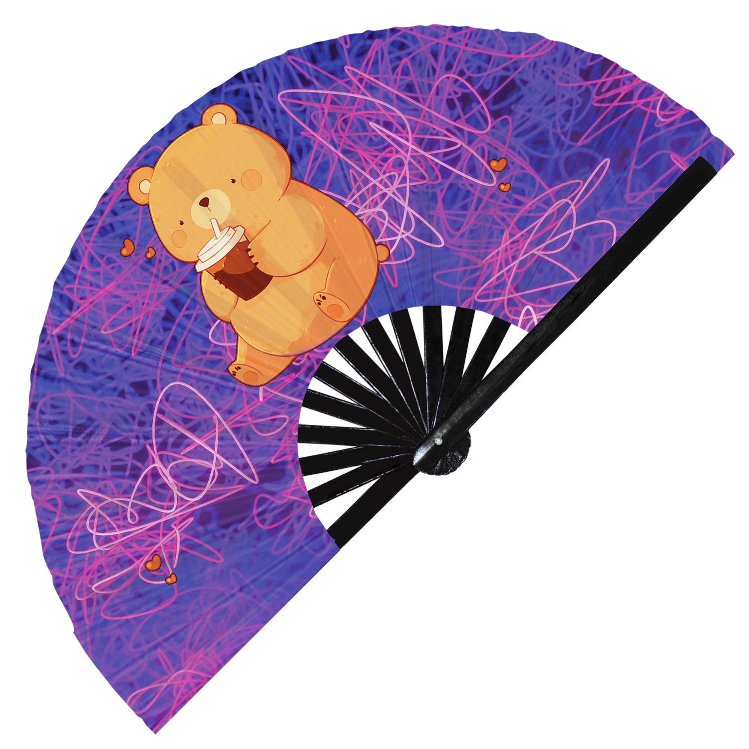 Cute Bear Drinking Coffee Rainbow – Clack Folding Rave & Festival Hand Fan