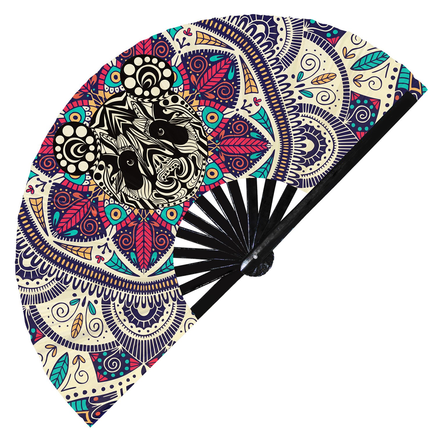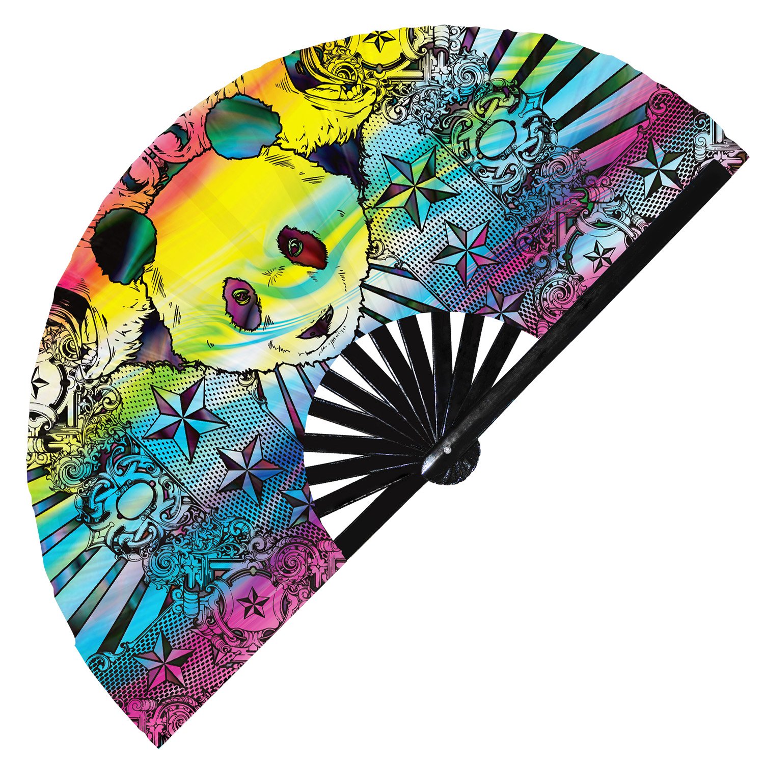 Cute Colorful Rainbow Panda – Clack Folding Rave & Festival Hand Fan