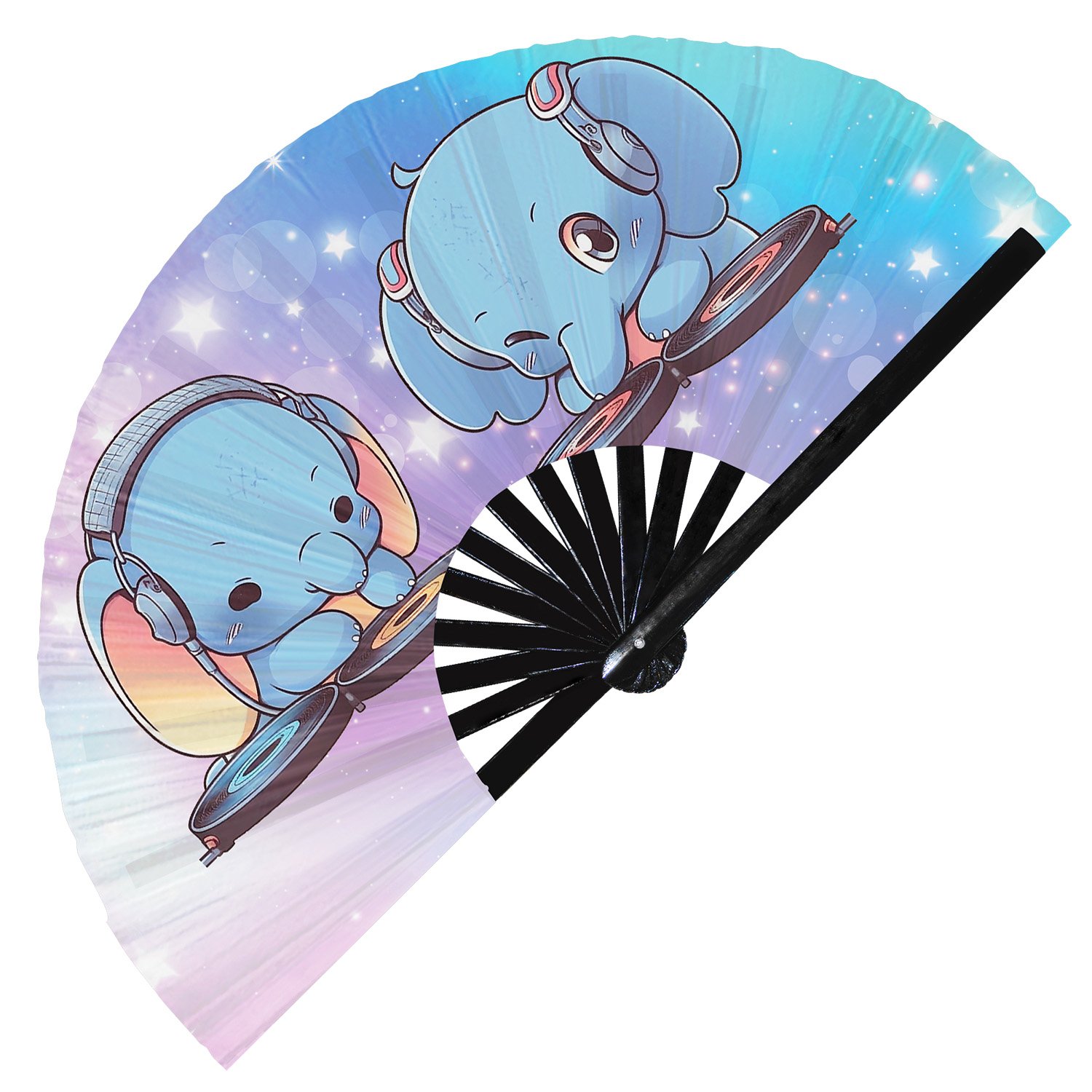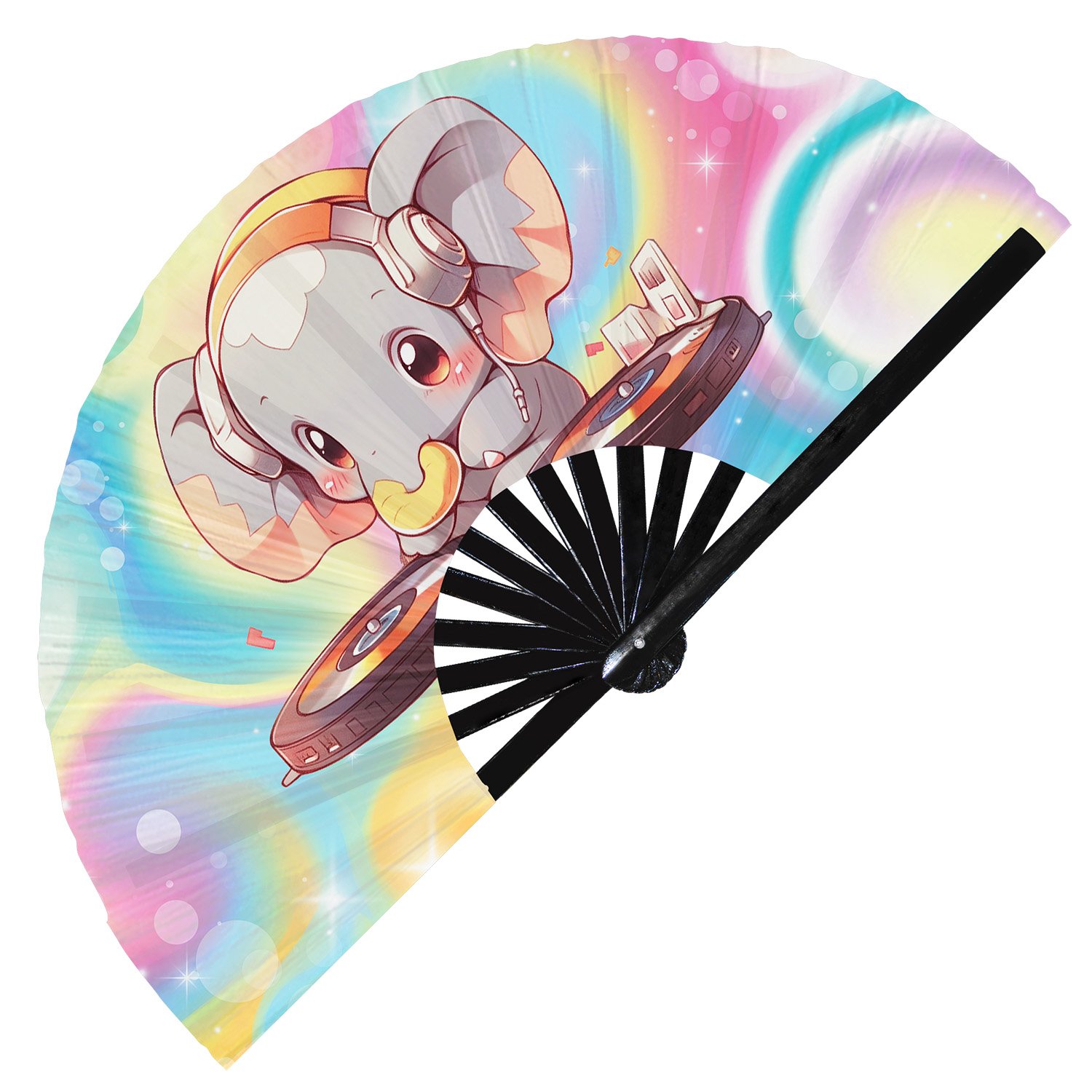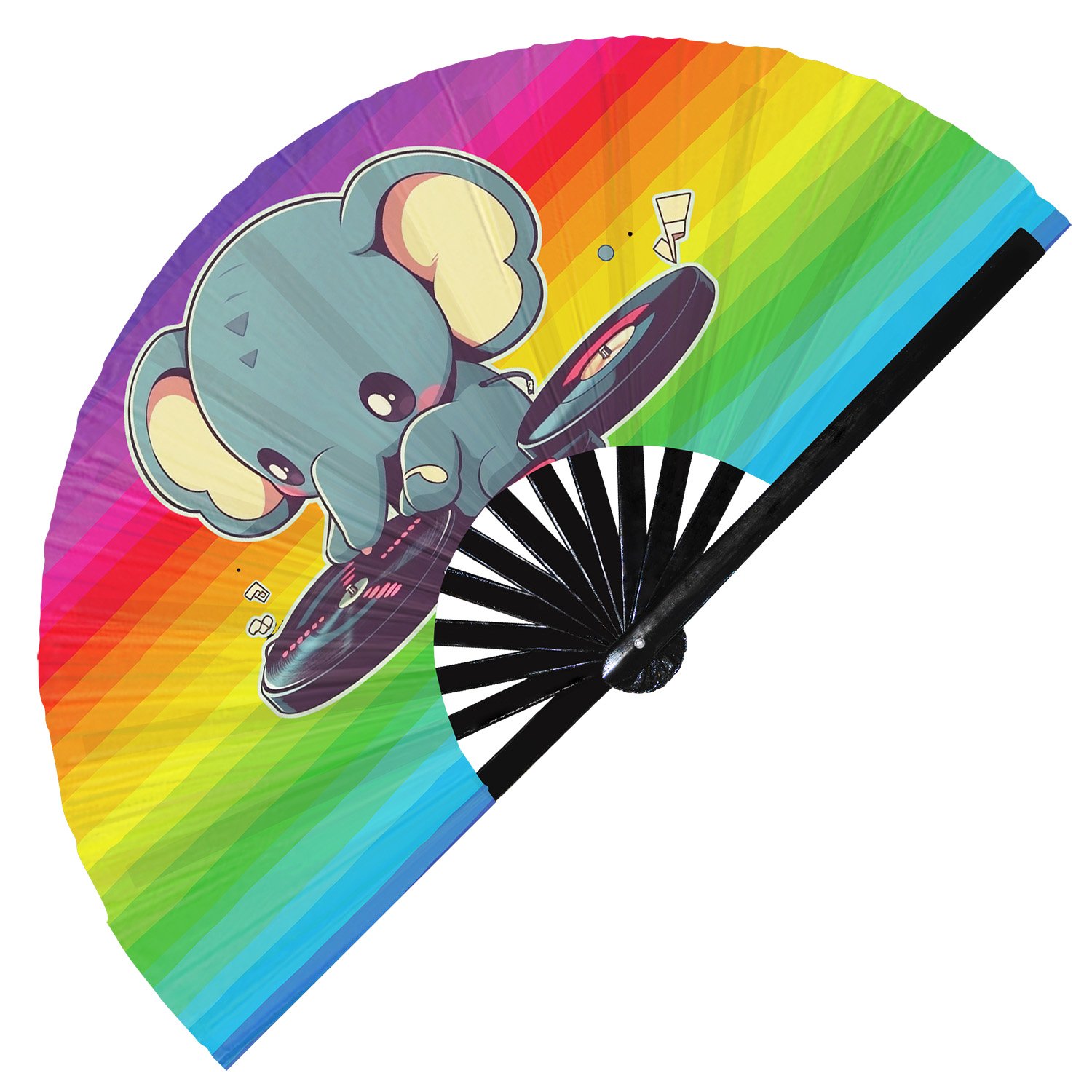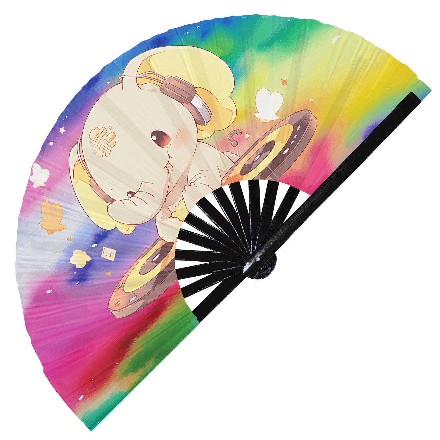 Cute Dj Elephant Rave Cartoon – Clack Folding Rave & Festival Hand Fan