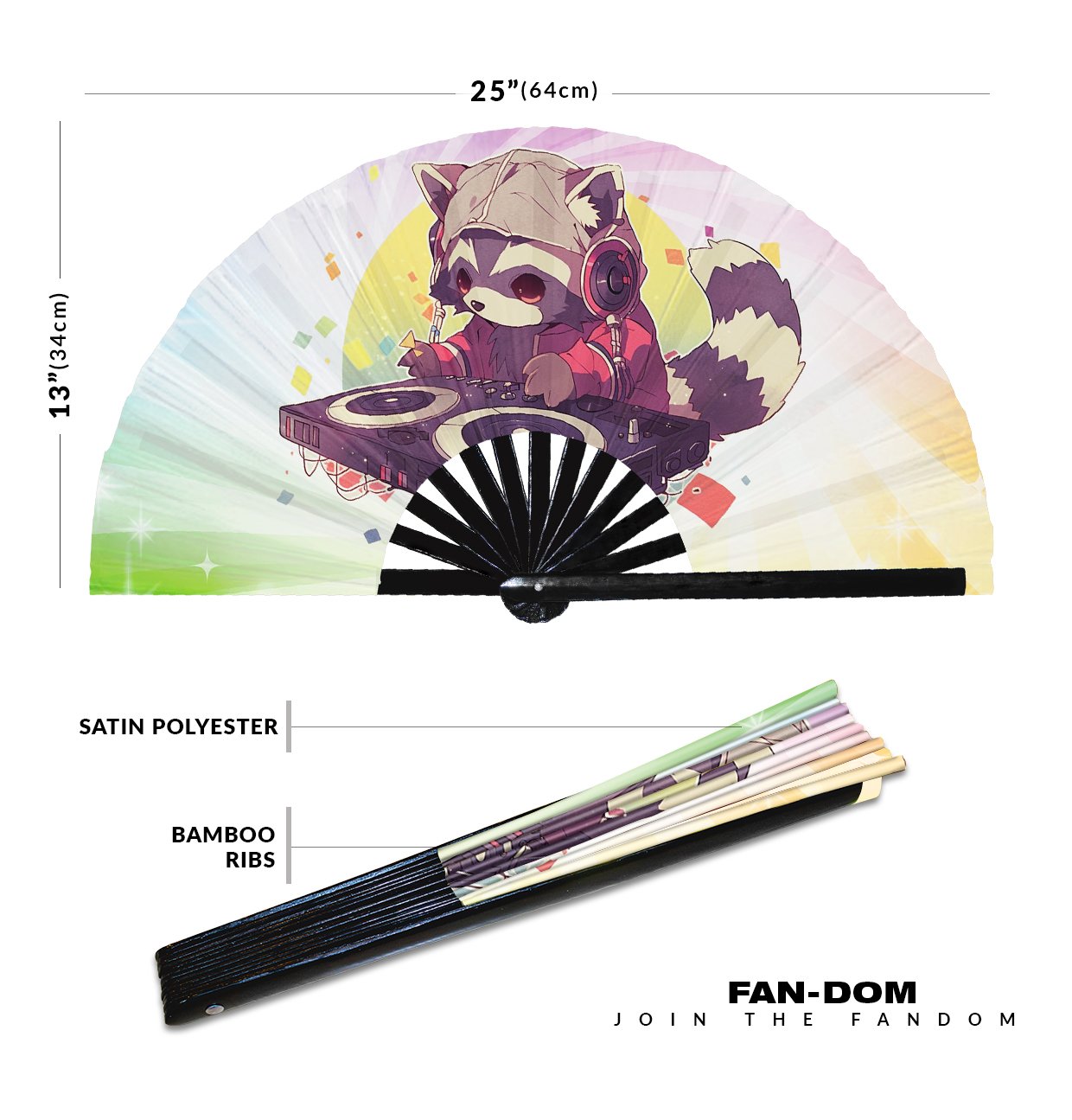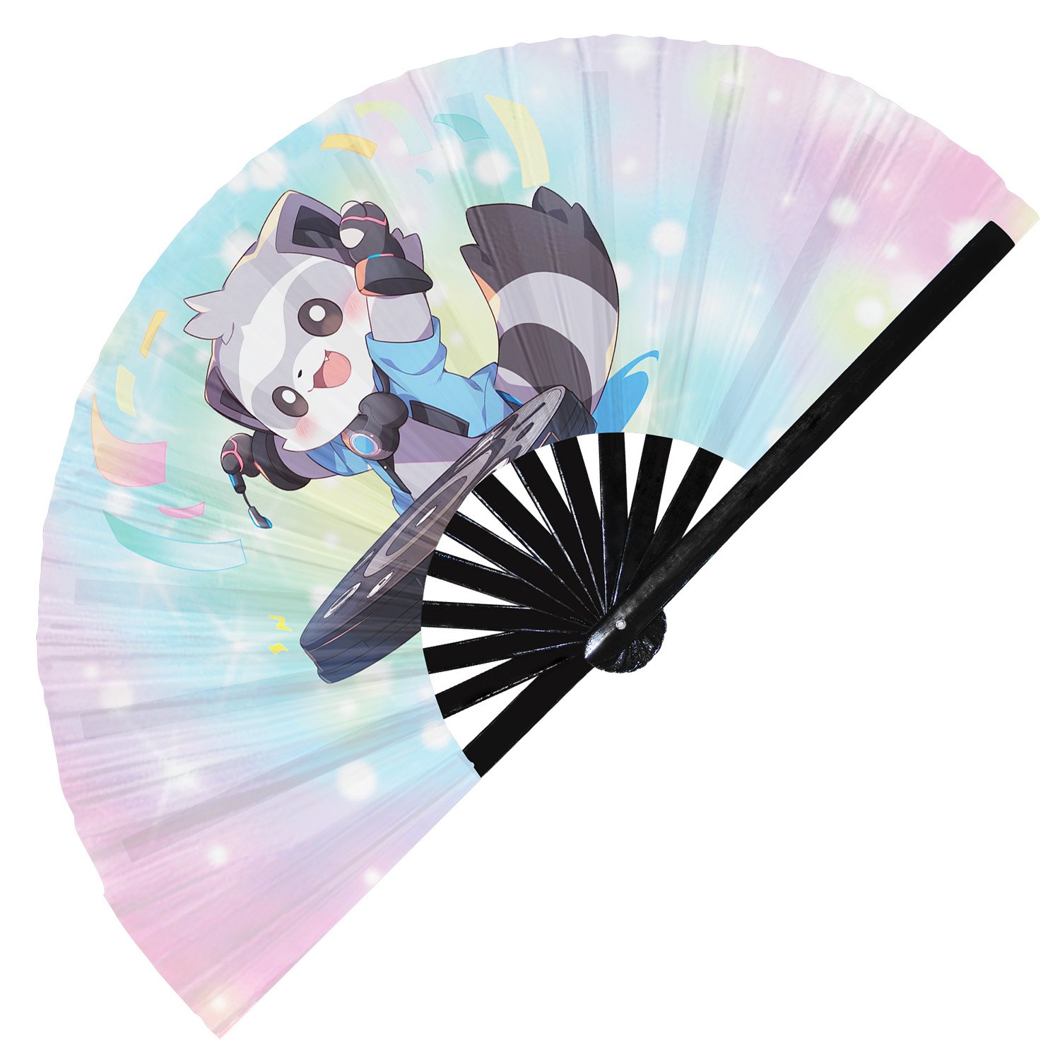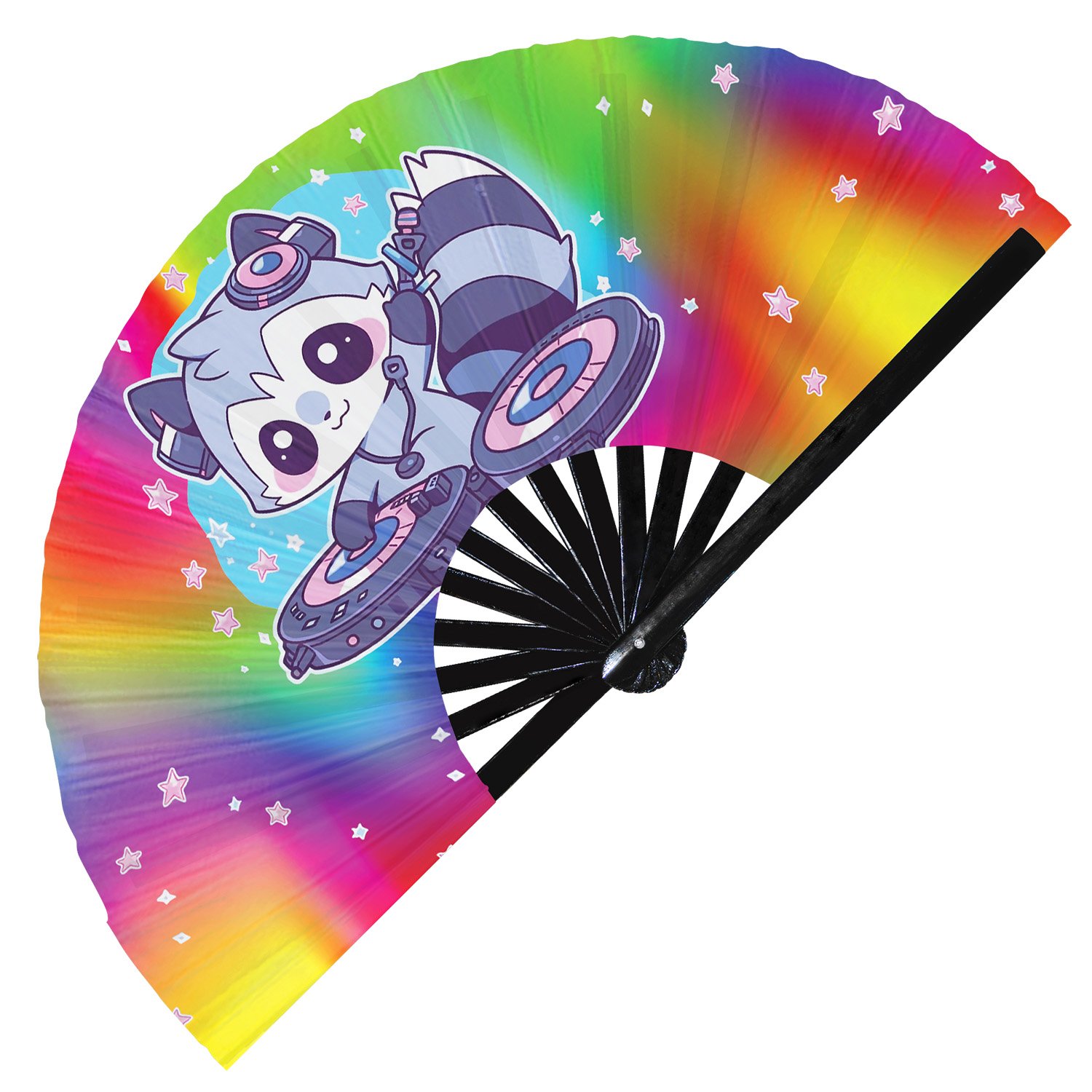 Cute Dj Racoon Rave Cartoon – Clack Folding Rave & Festival Hand Fan