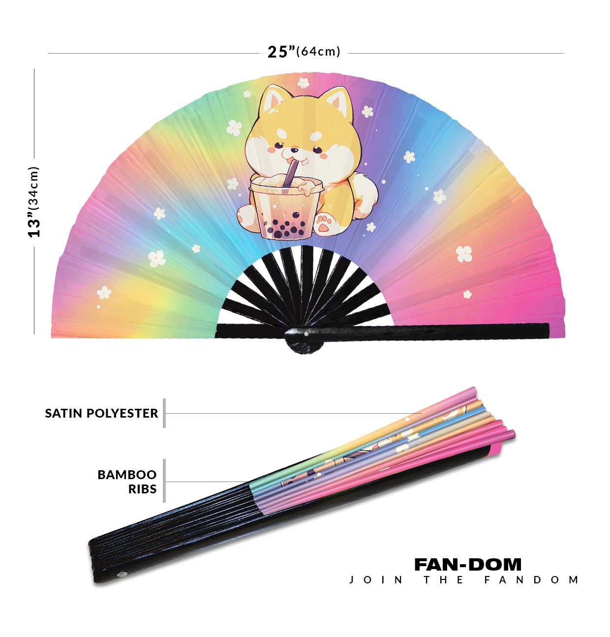 Cute Dog Drinking Boba Rainbow Puppy – Clack Folding Rave & Festival Hand Fan