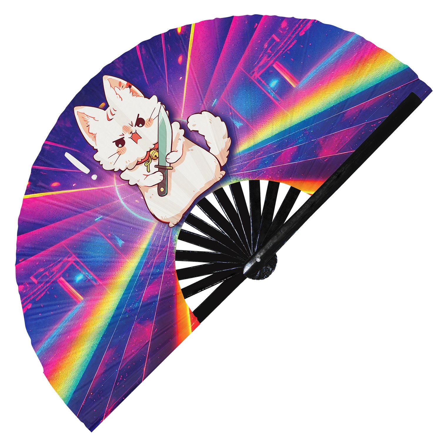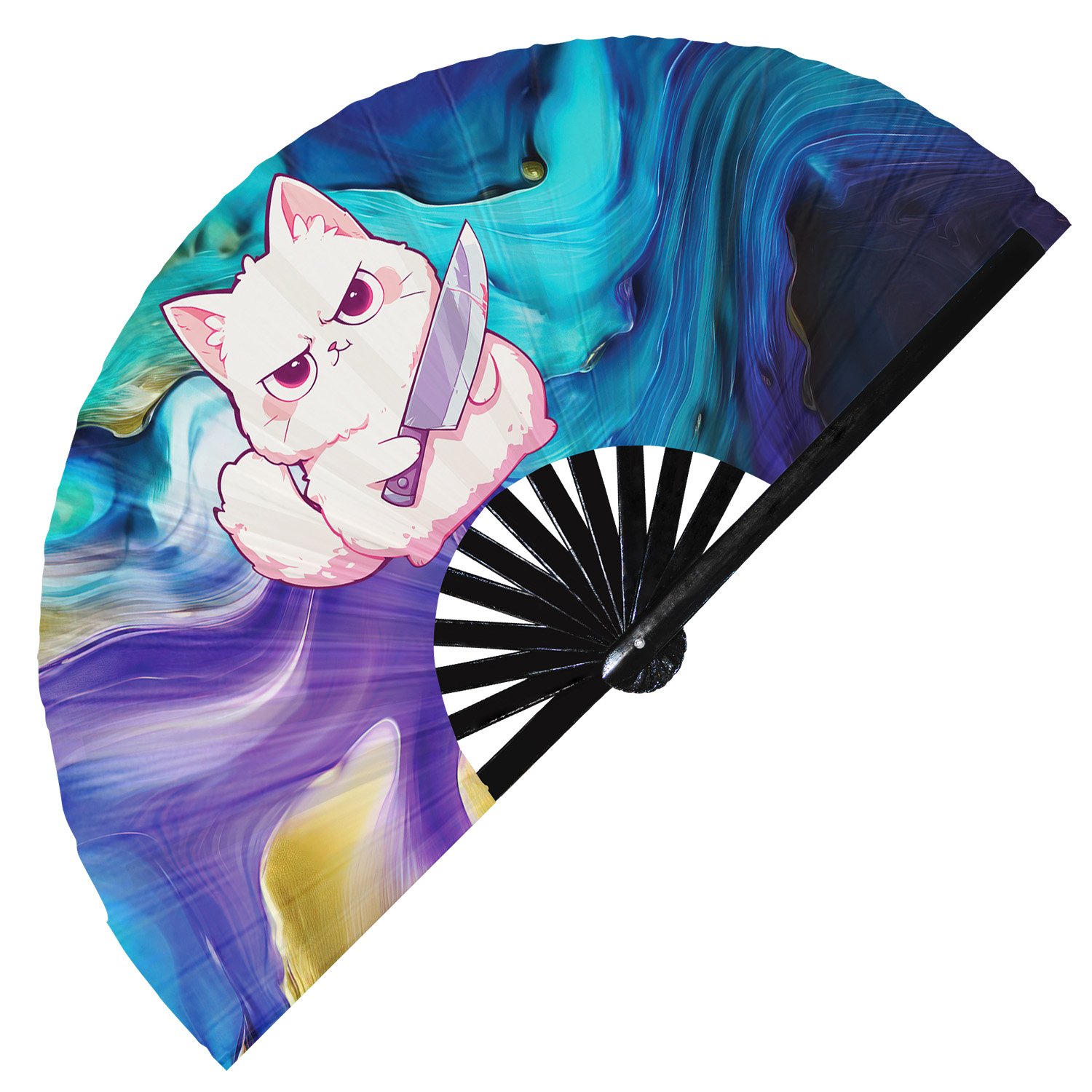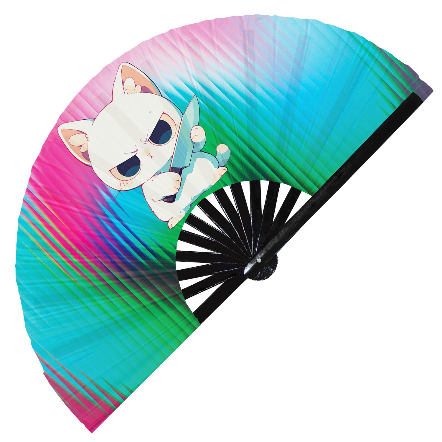 Cute Murderous Cat With Knife Violence Kitty – Clack Folding Rave & Festival Hand Fan