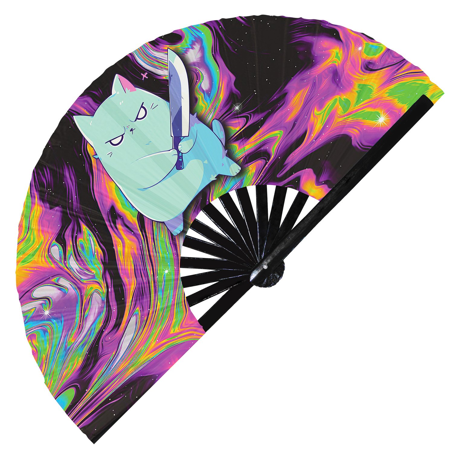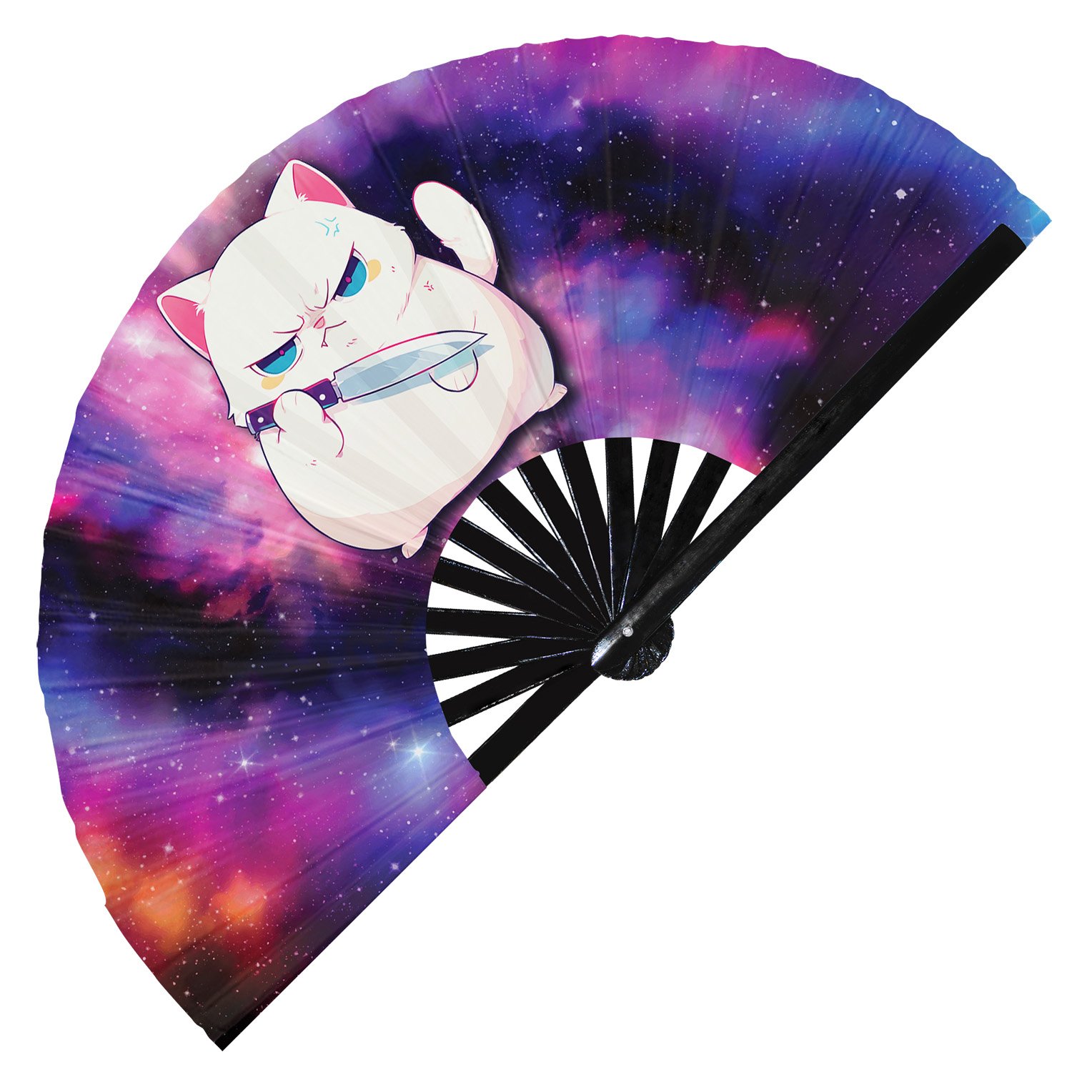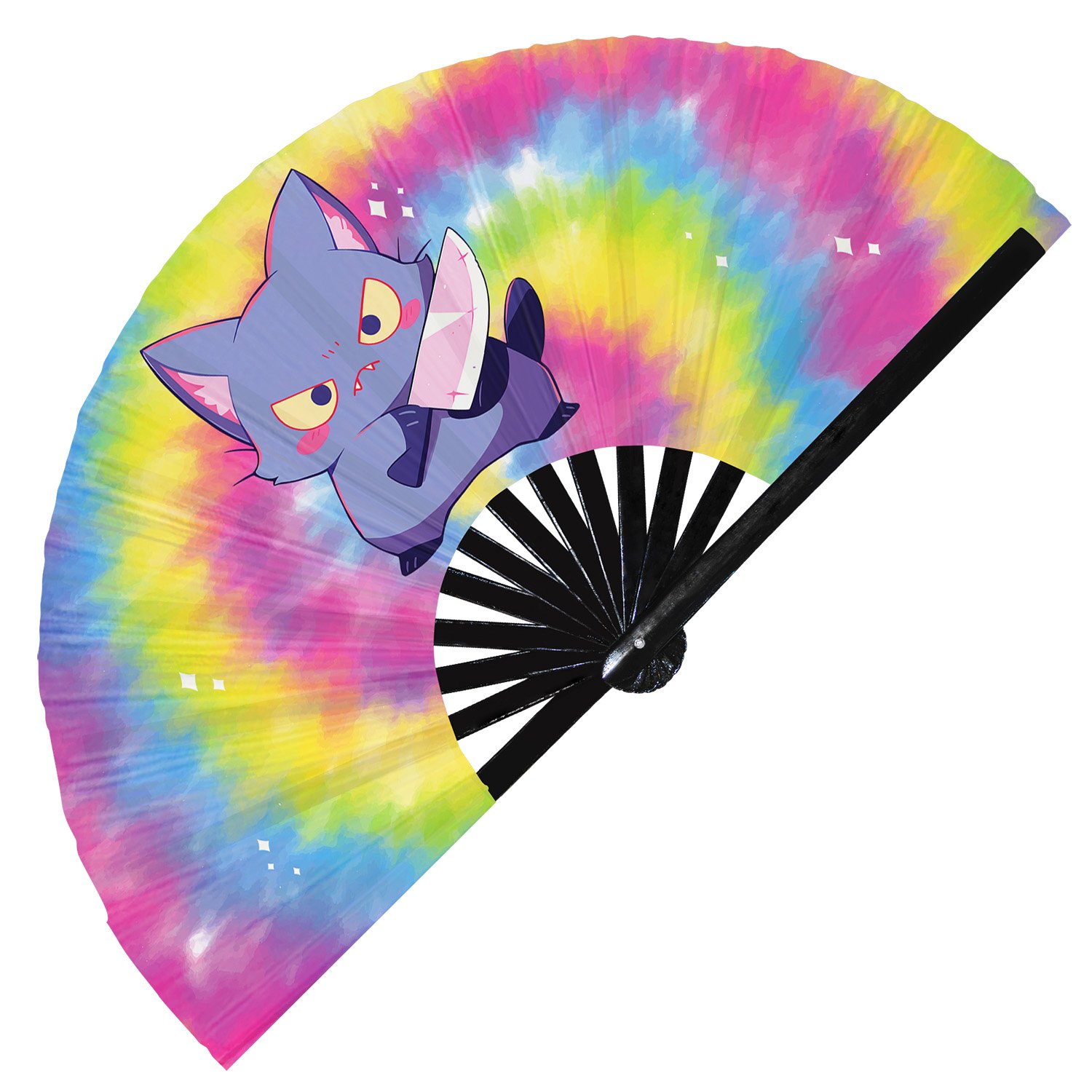 Cute Murderous Cat With Knife Violence Kitty – Clack Folding Rave & Festival Hand Fan