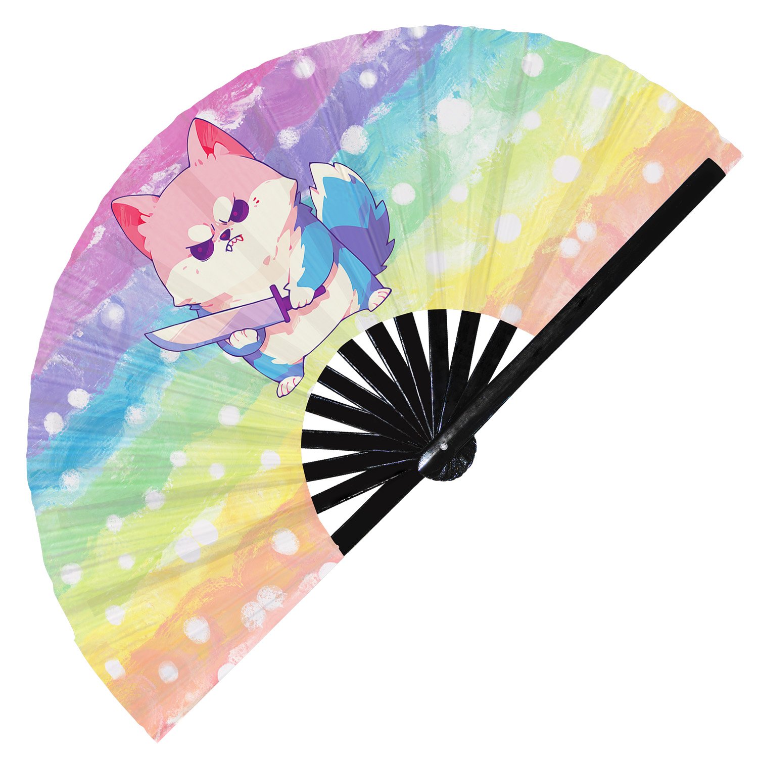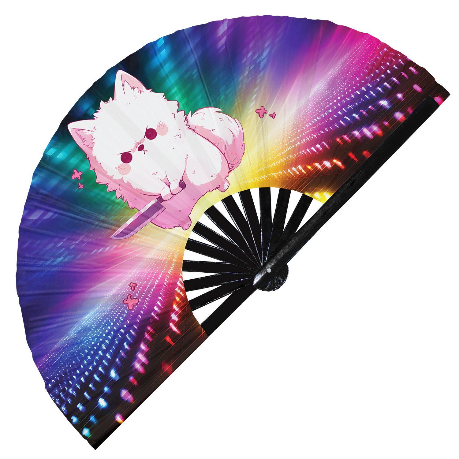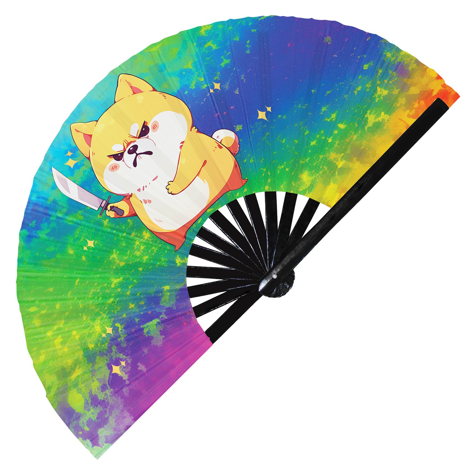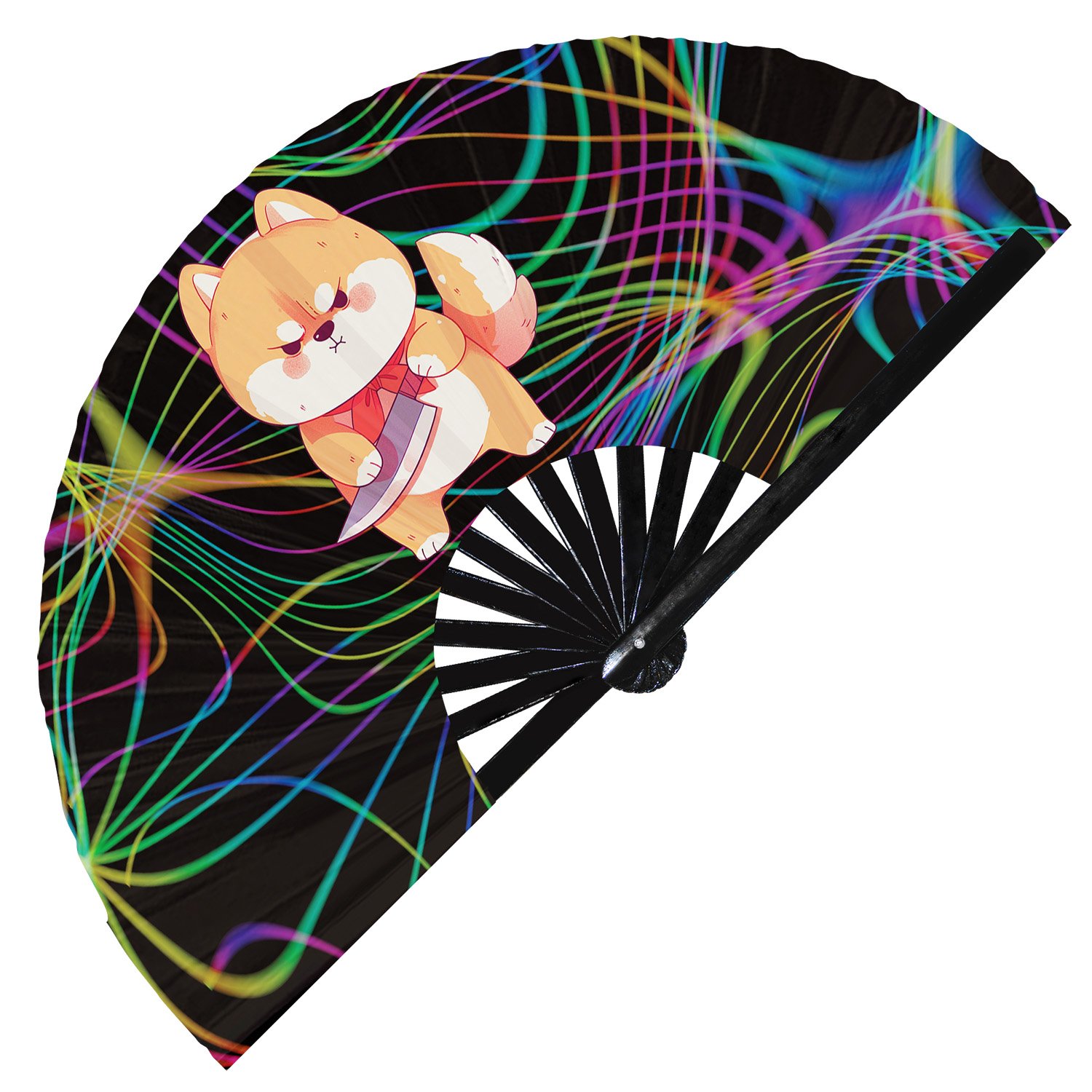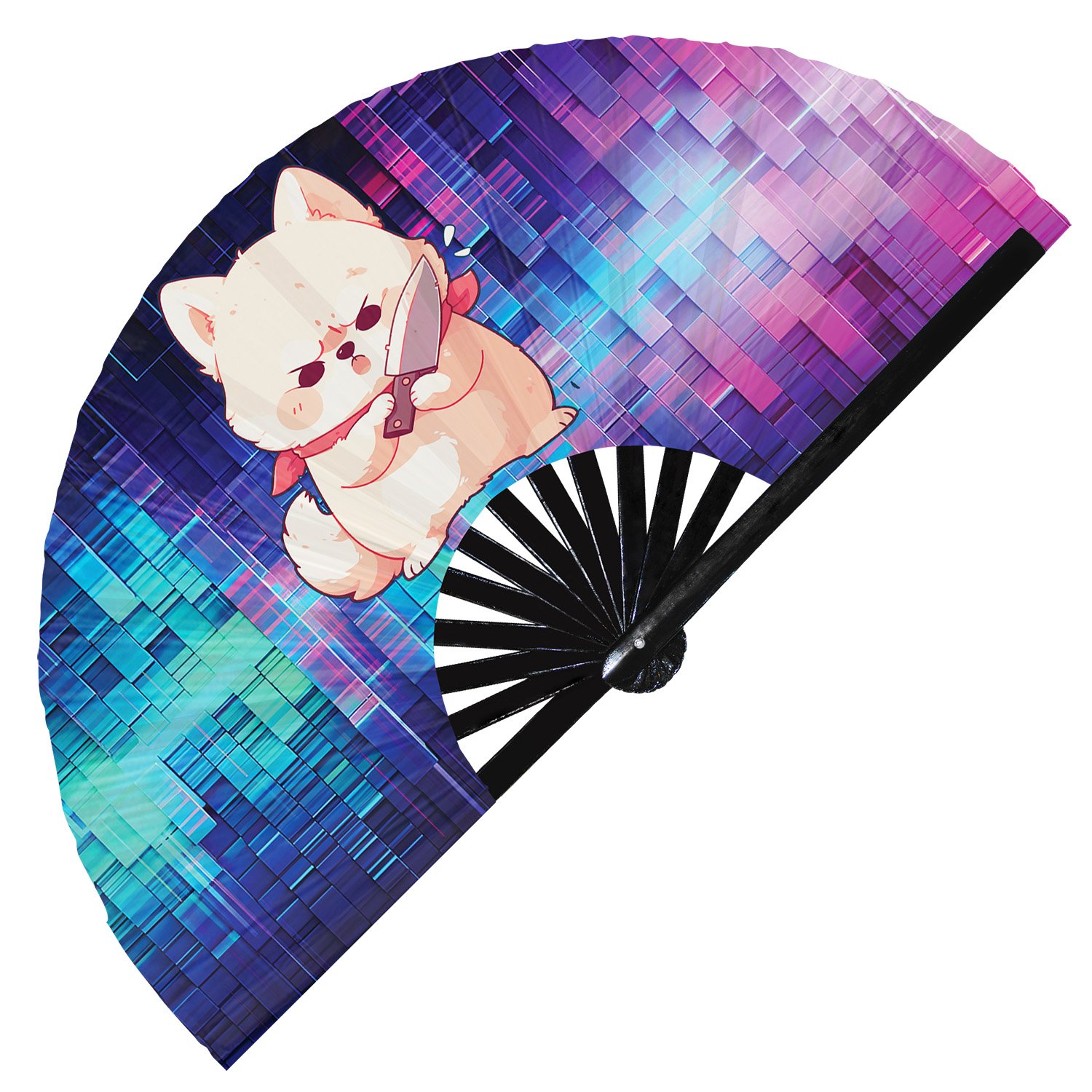 Cute Murderous Dog With Knife Violence Puppy – Clack Folding Rave & Festival Hand Fan