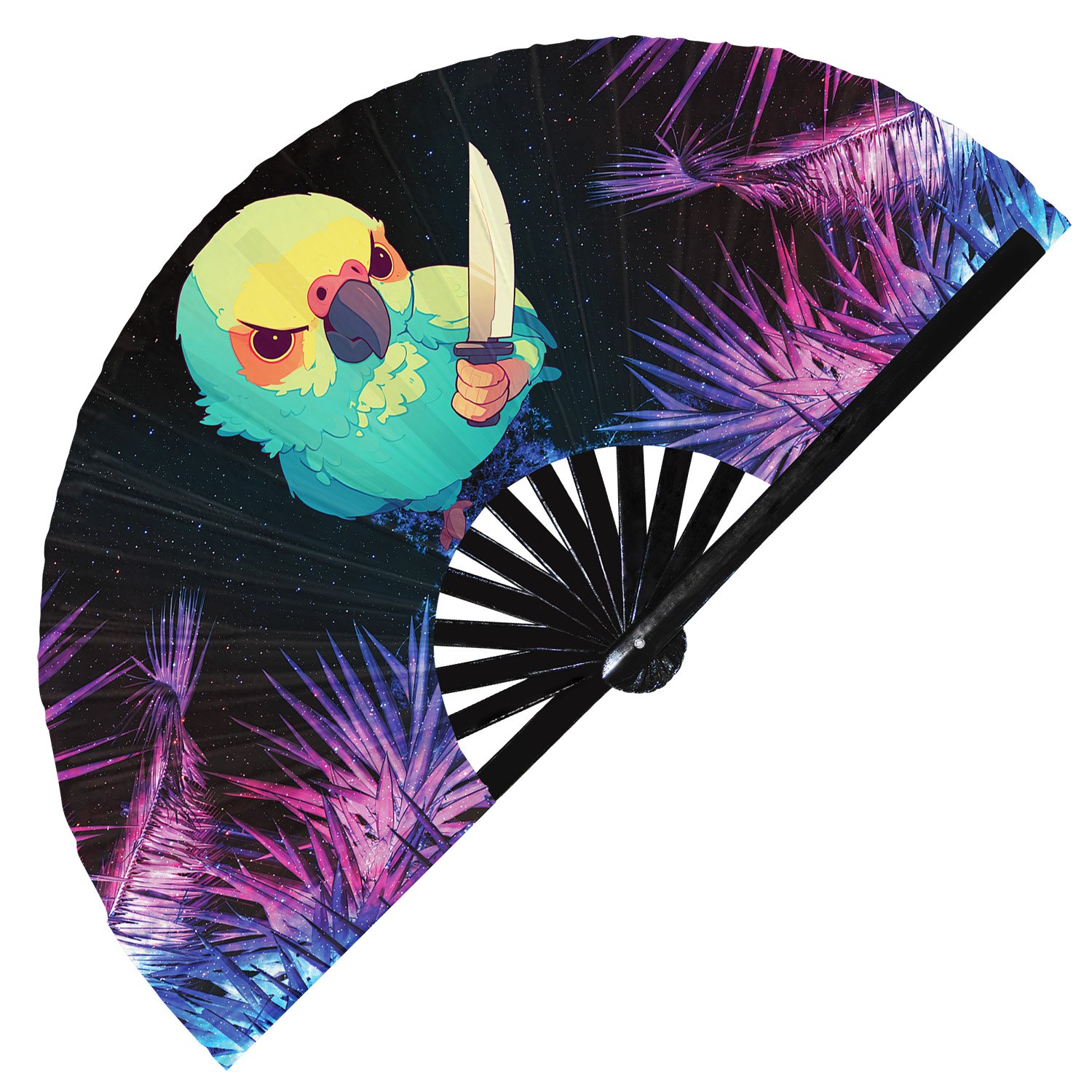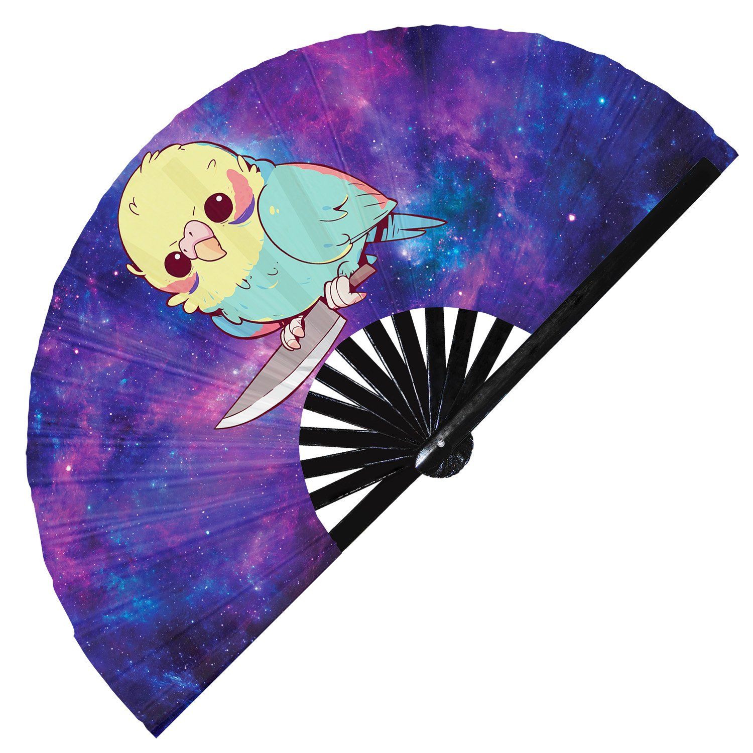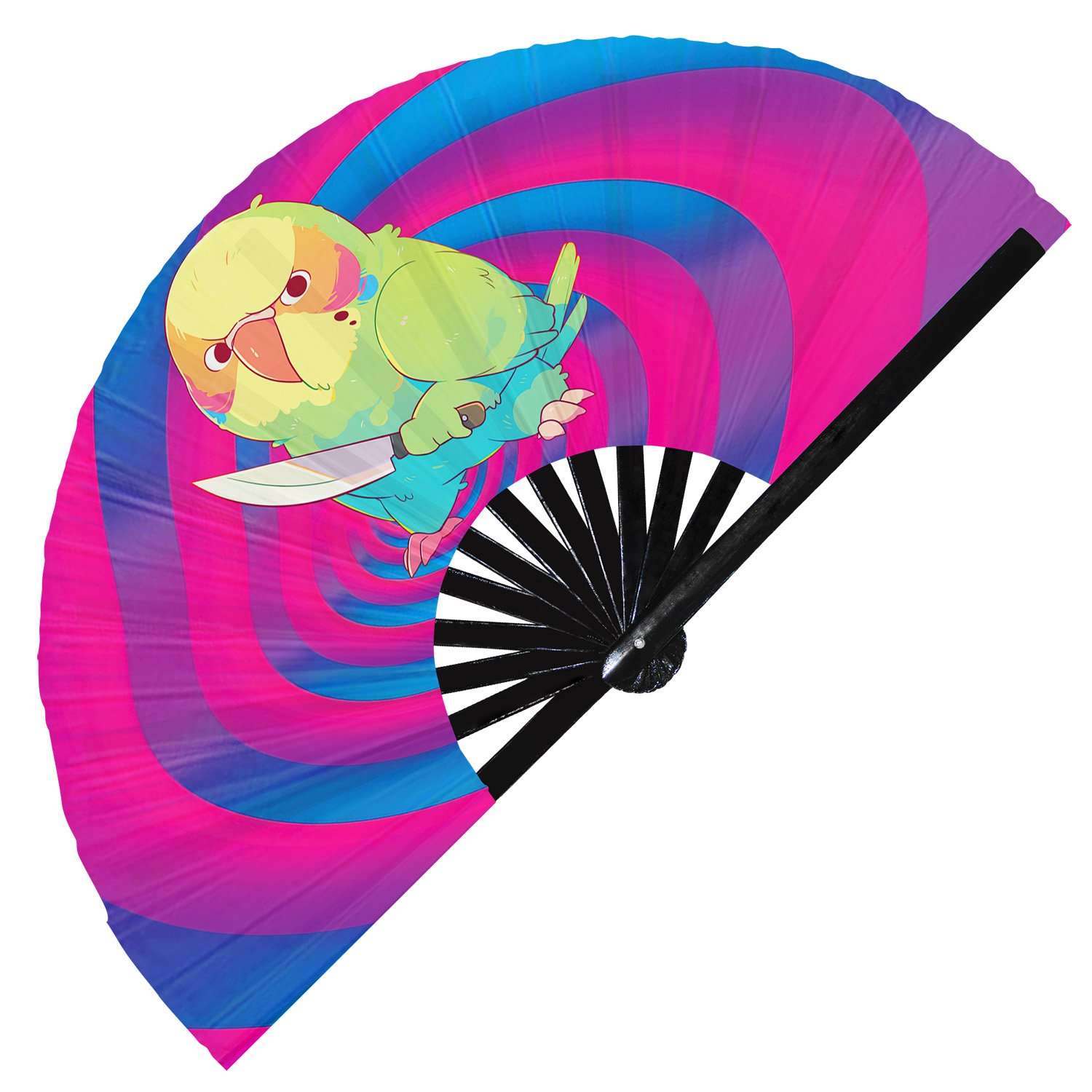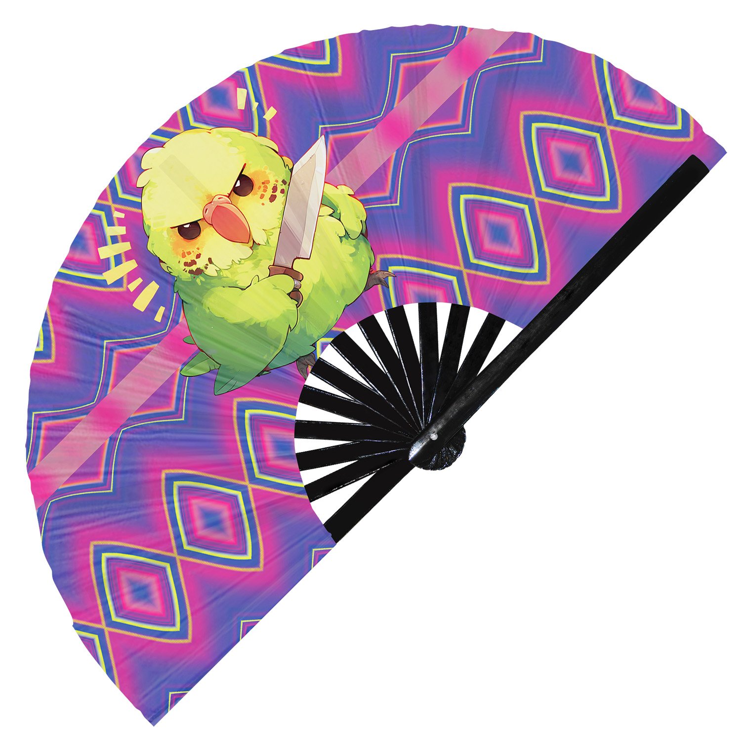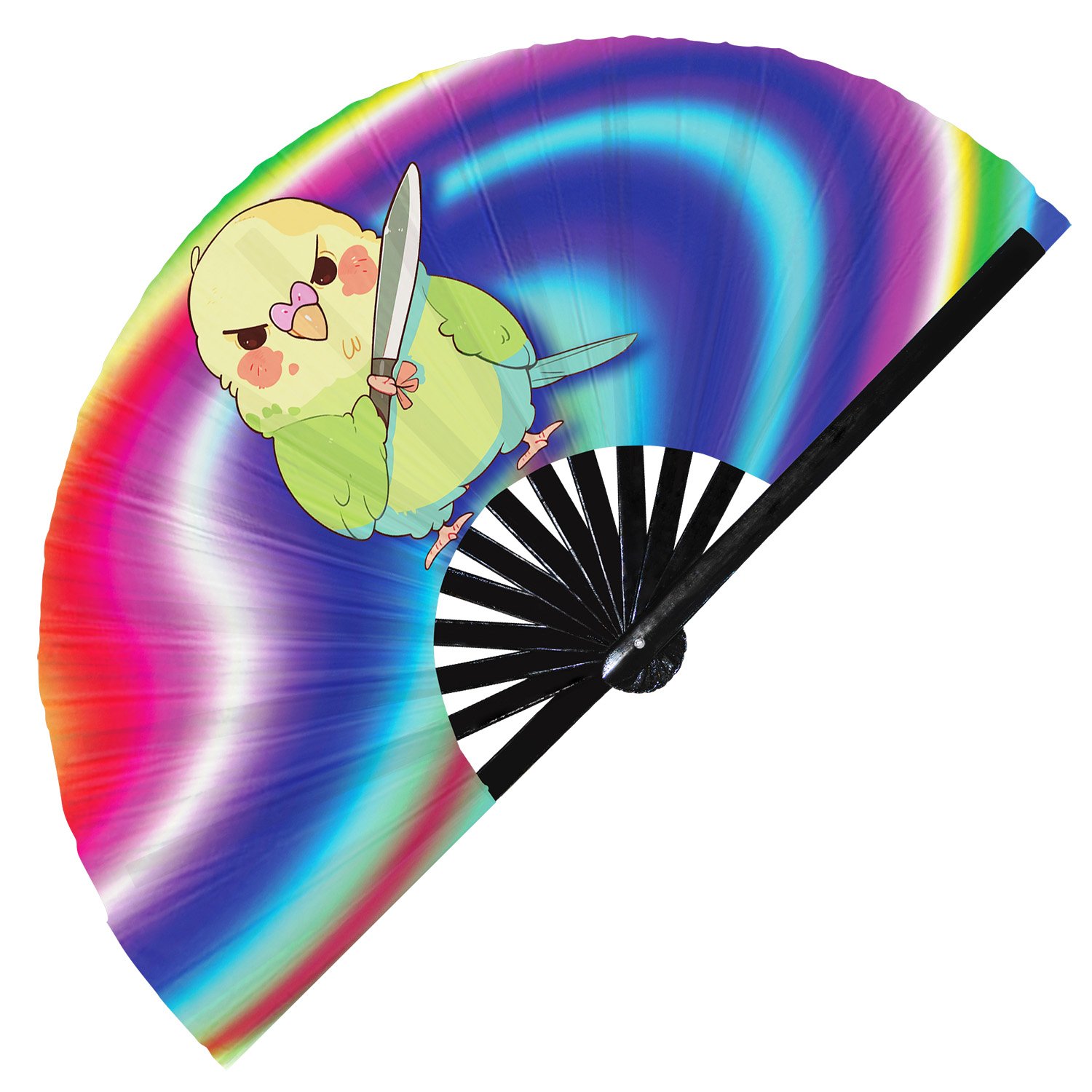 Cute Murderous Parrot With Knife Violence Parakeet – Clack Folding Rave & Festival Hand Fan