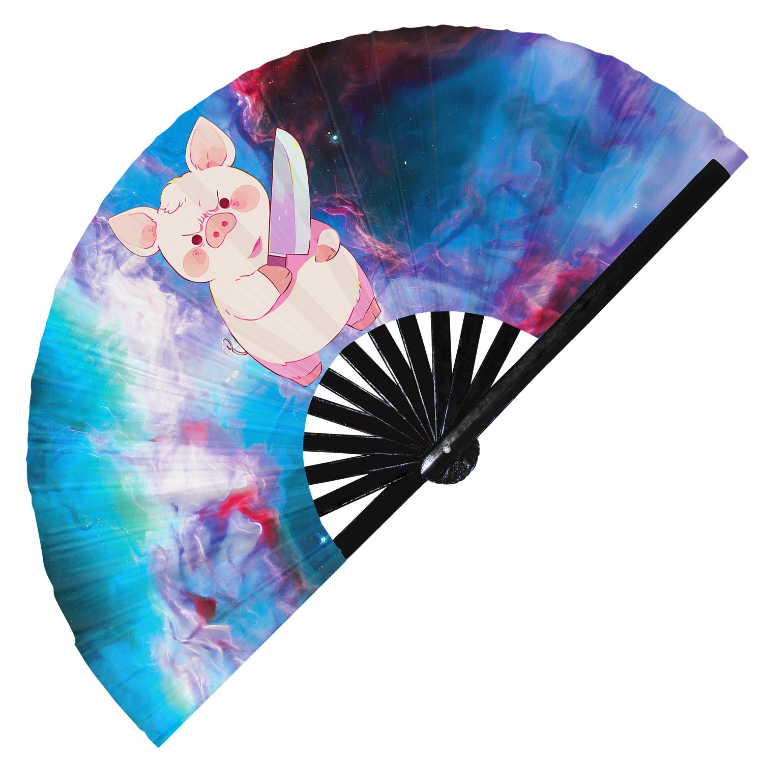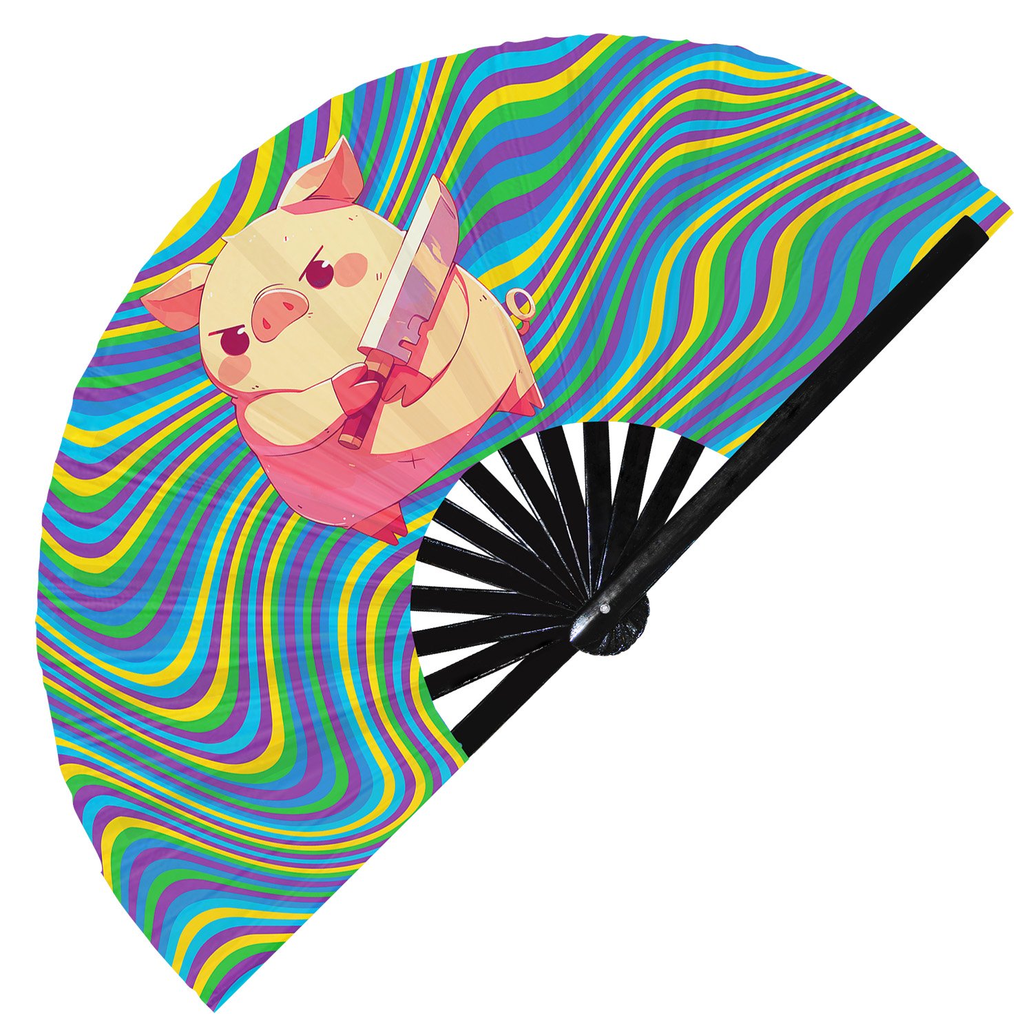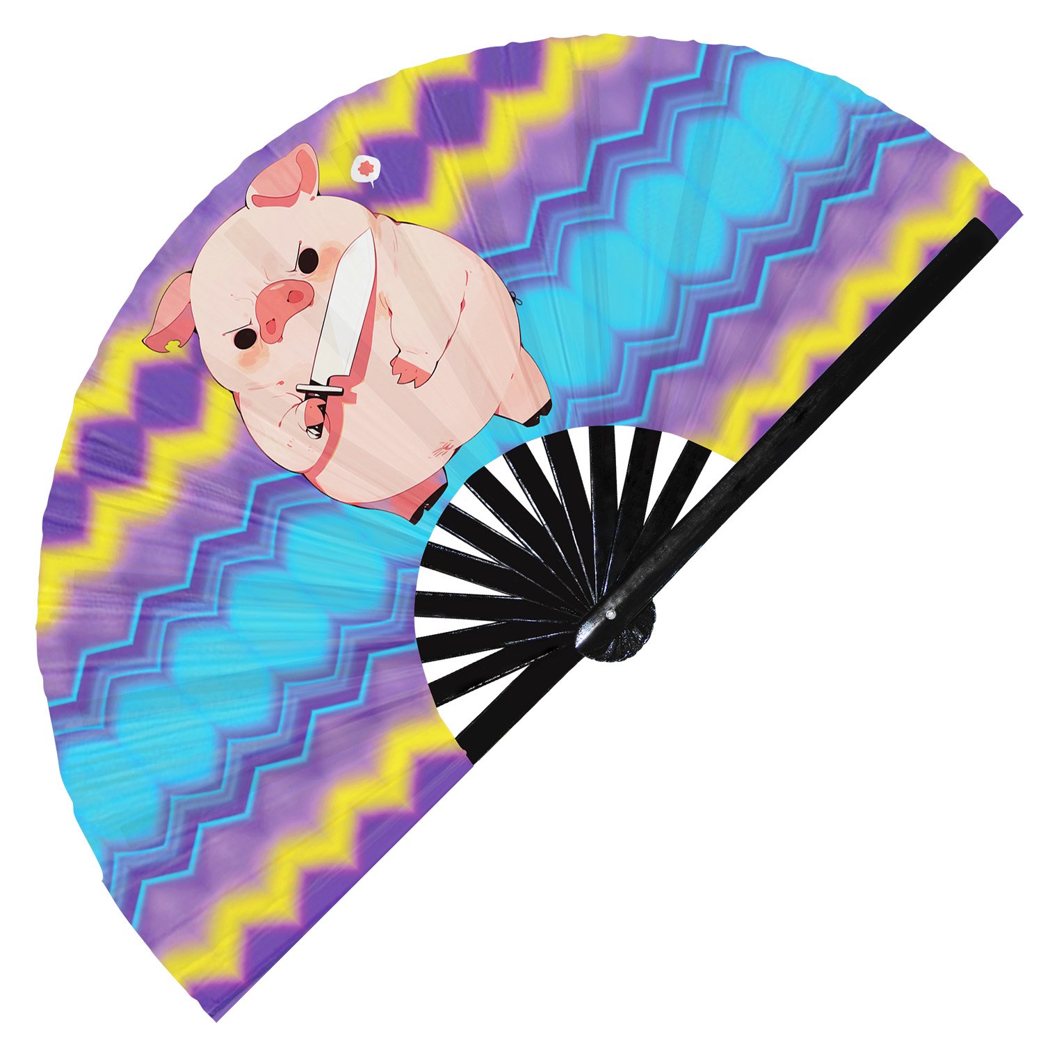 Cute Murderous Pig With Knife Violence Piglet – Clack Folding Rave & Festival Hand Fan