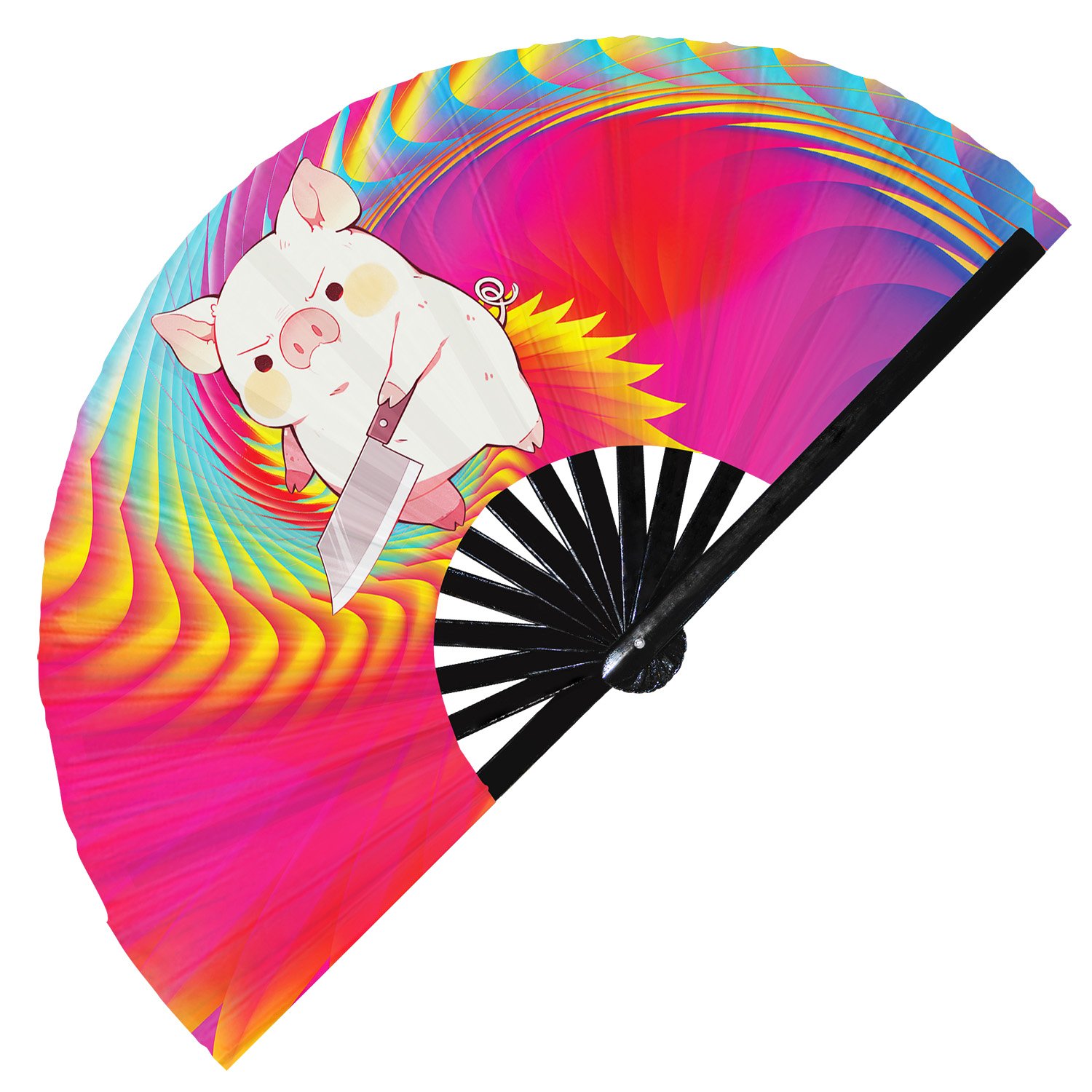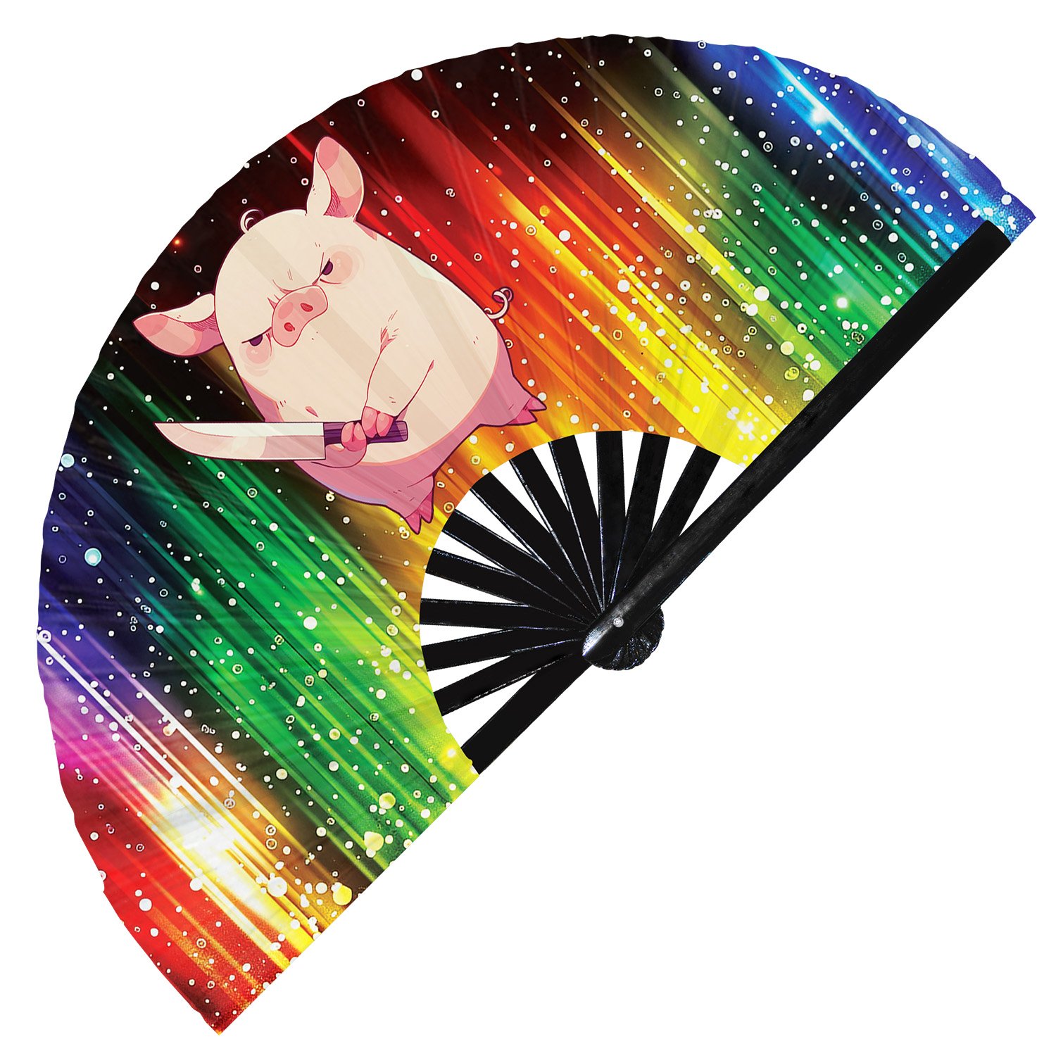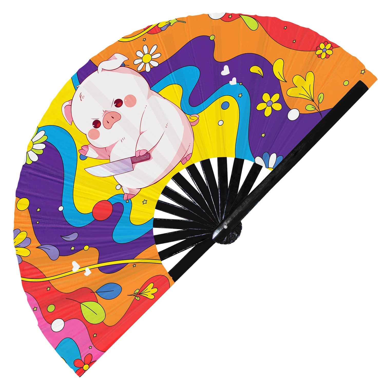 Cute Murderous Pig With Knife Violence Piglet – Clack Folding Rave & Festival Hand Fan