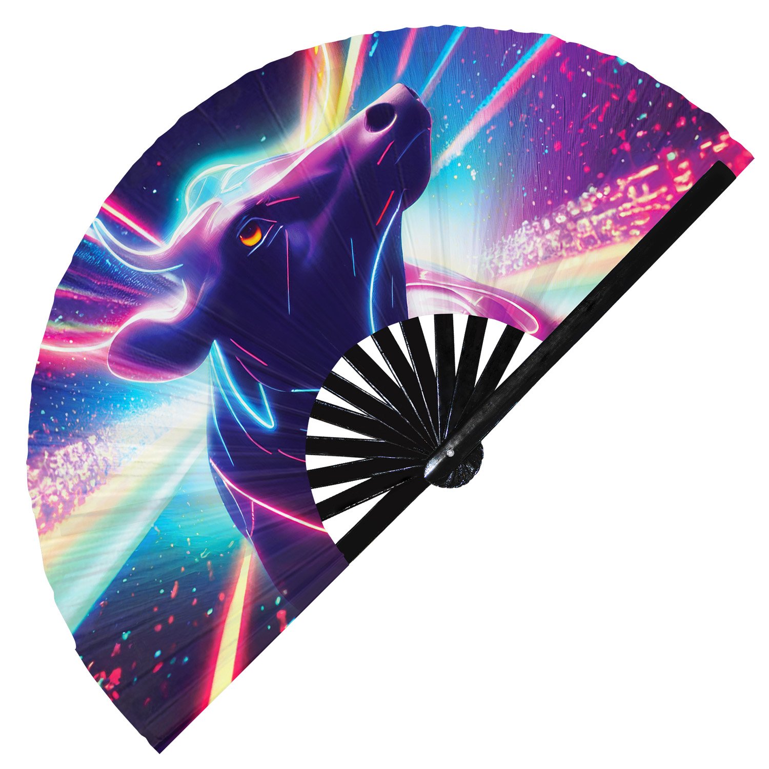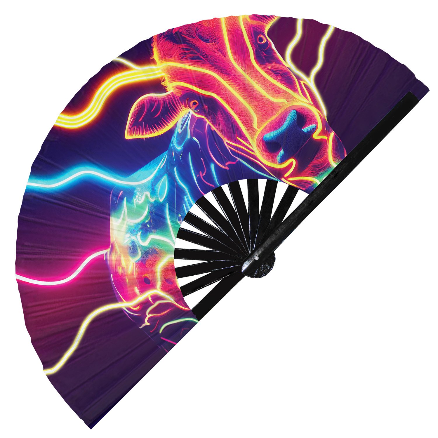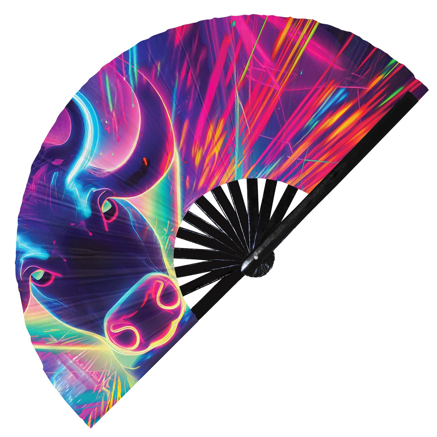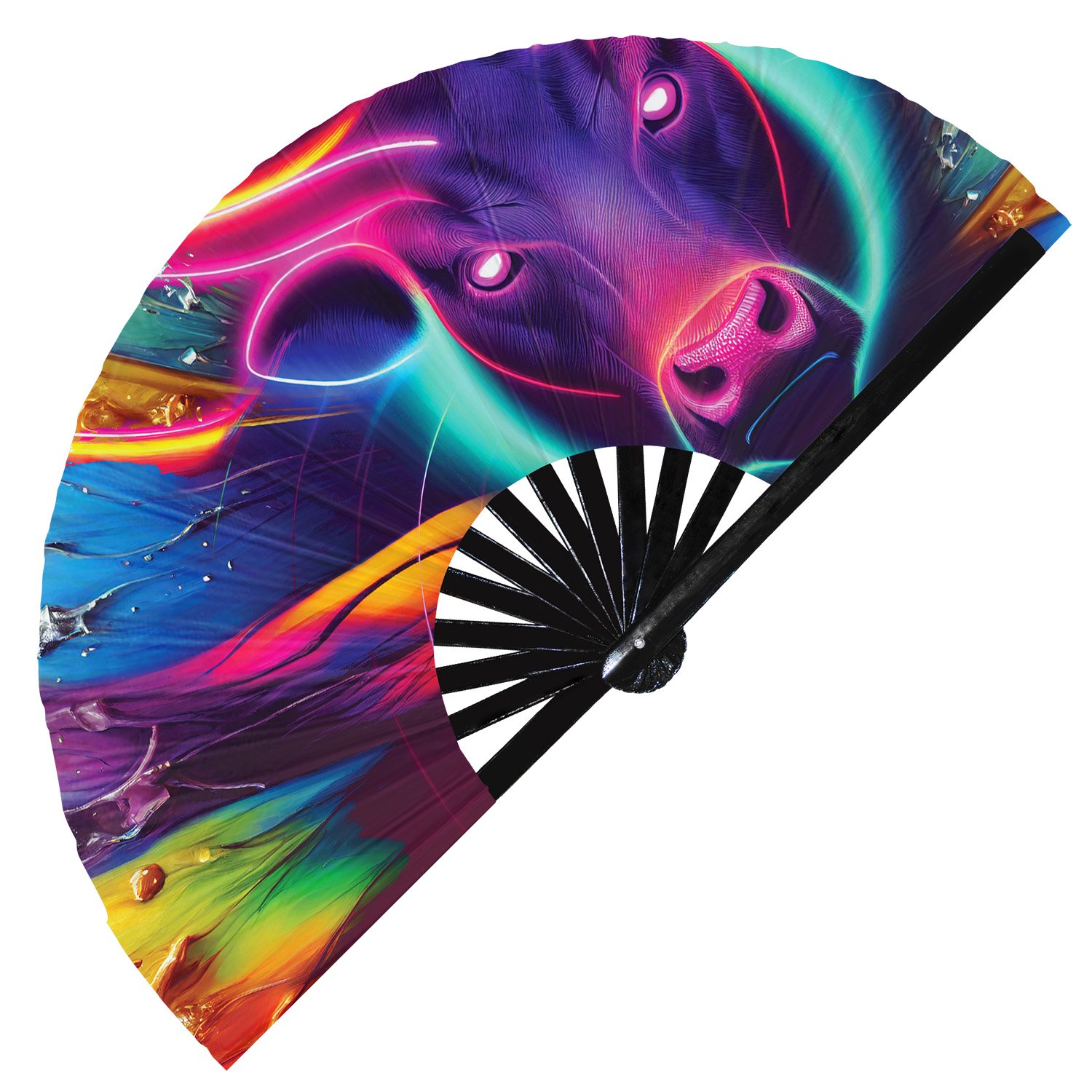 Neon Trippy Cow Psychedelic Rainbow – Clack Folding Rave & Festival Hand Fan