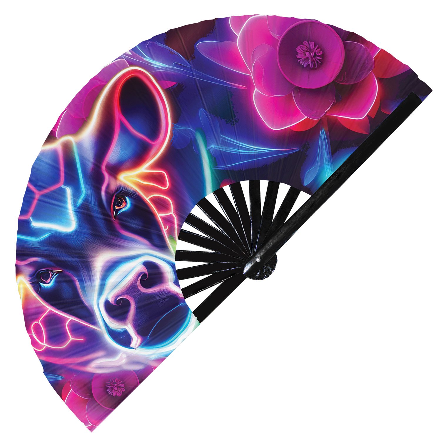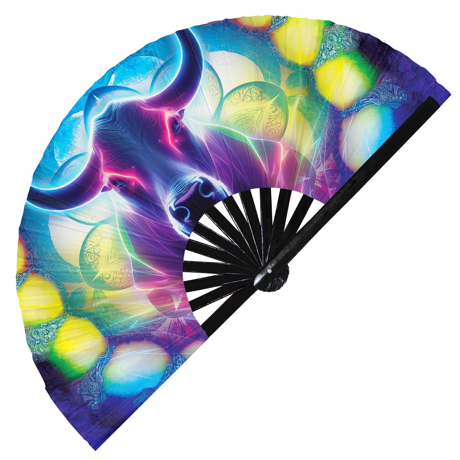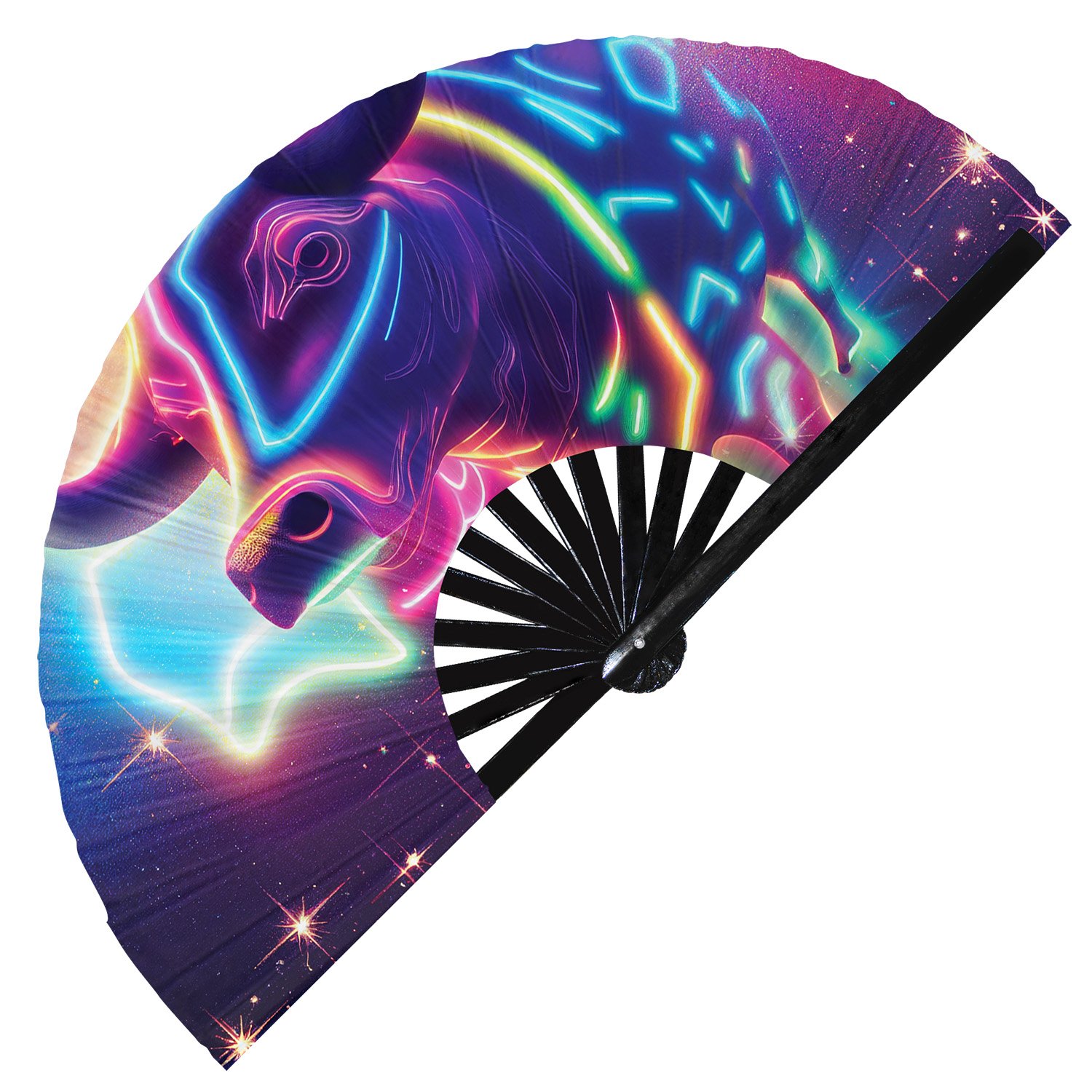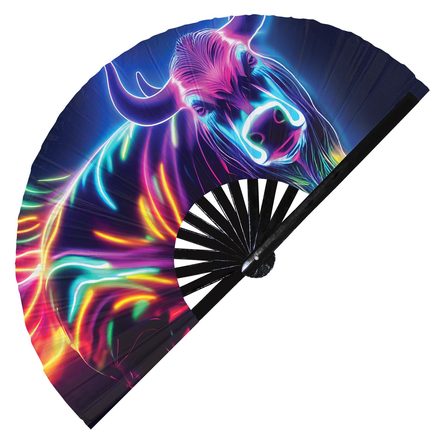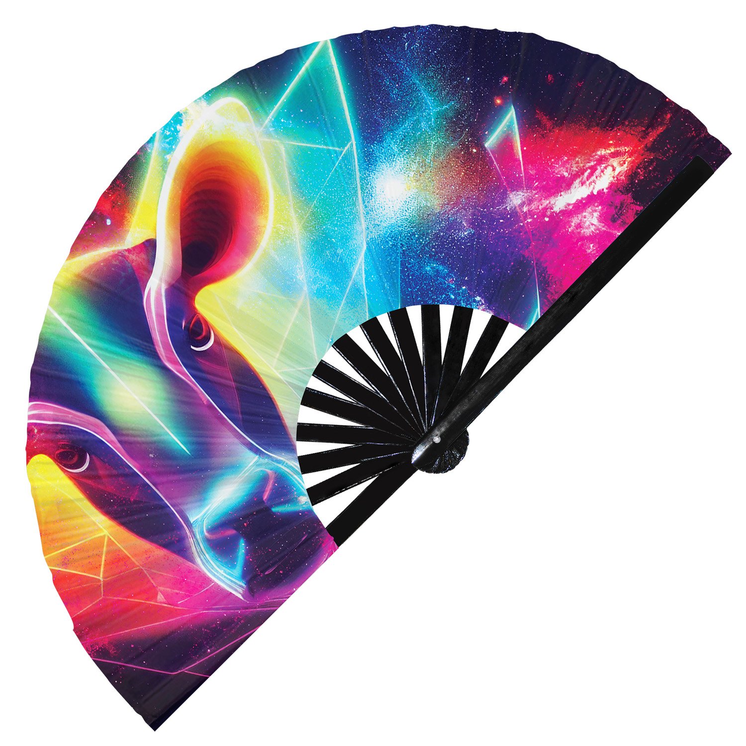Neon Trippy Cow Psychedelic Rainbow – Clack Folding Rave & Festival Hand Fan