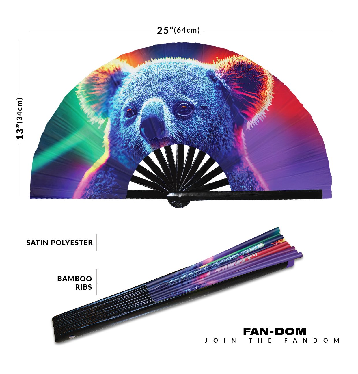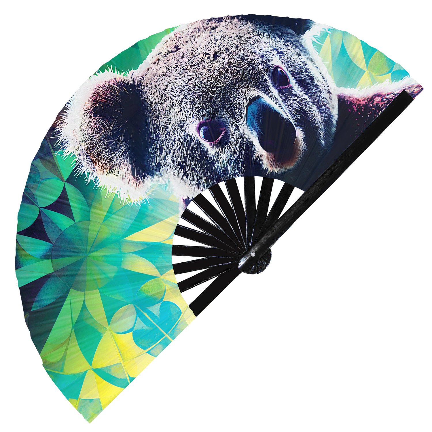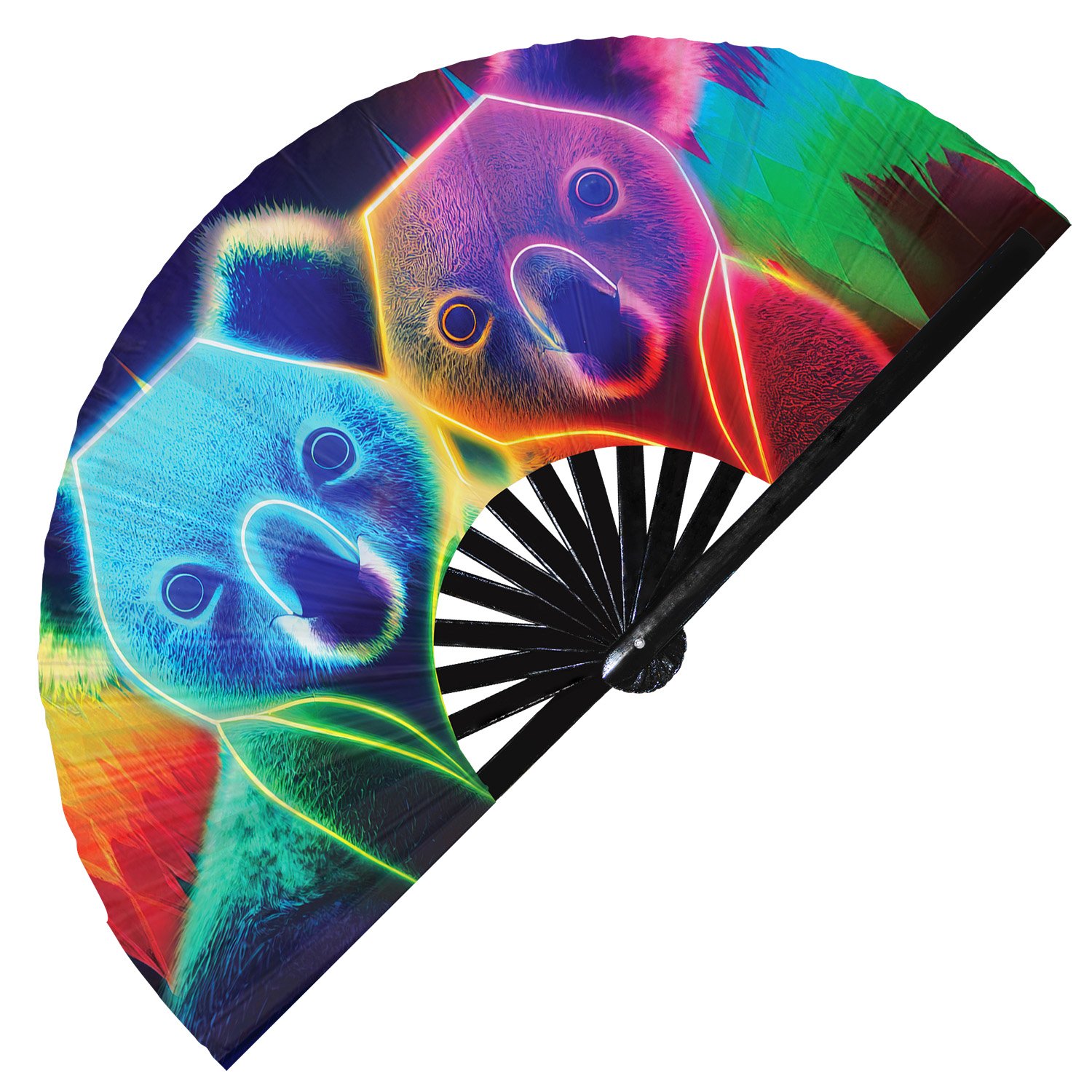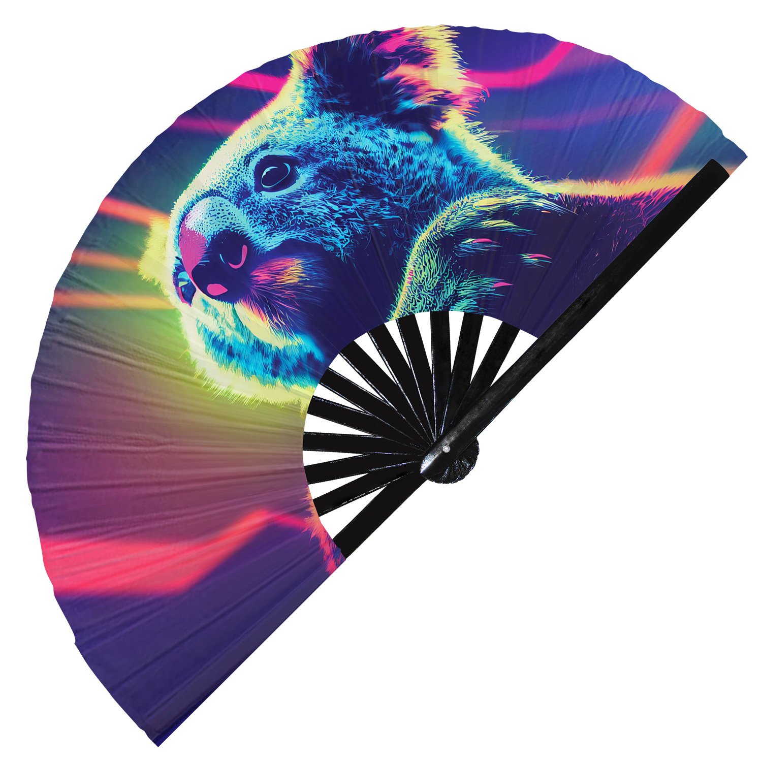 Neon Trippy Koala Psychedelic Rainbow – Clack Folding Rave & Festival Hand Fan