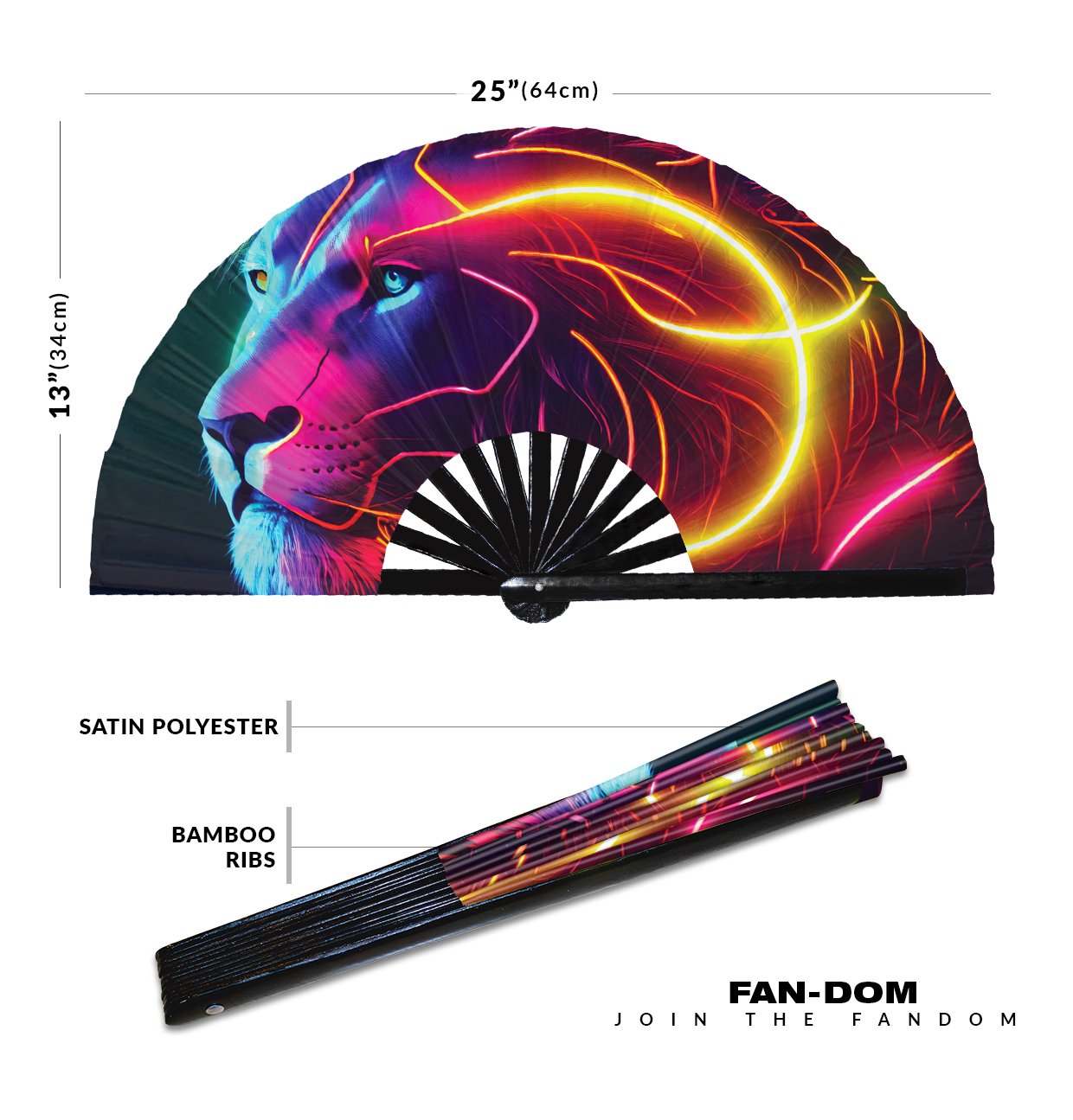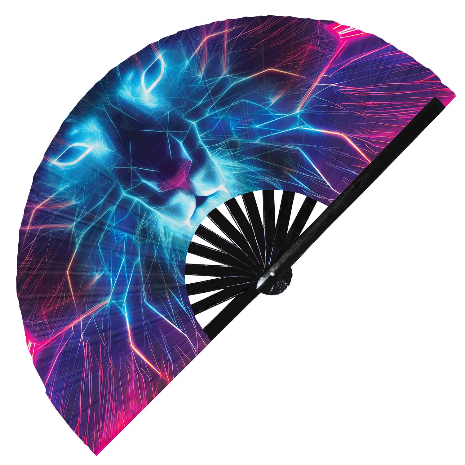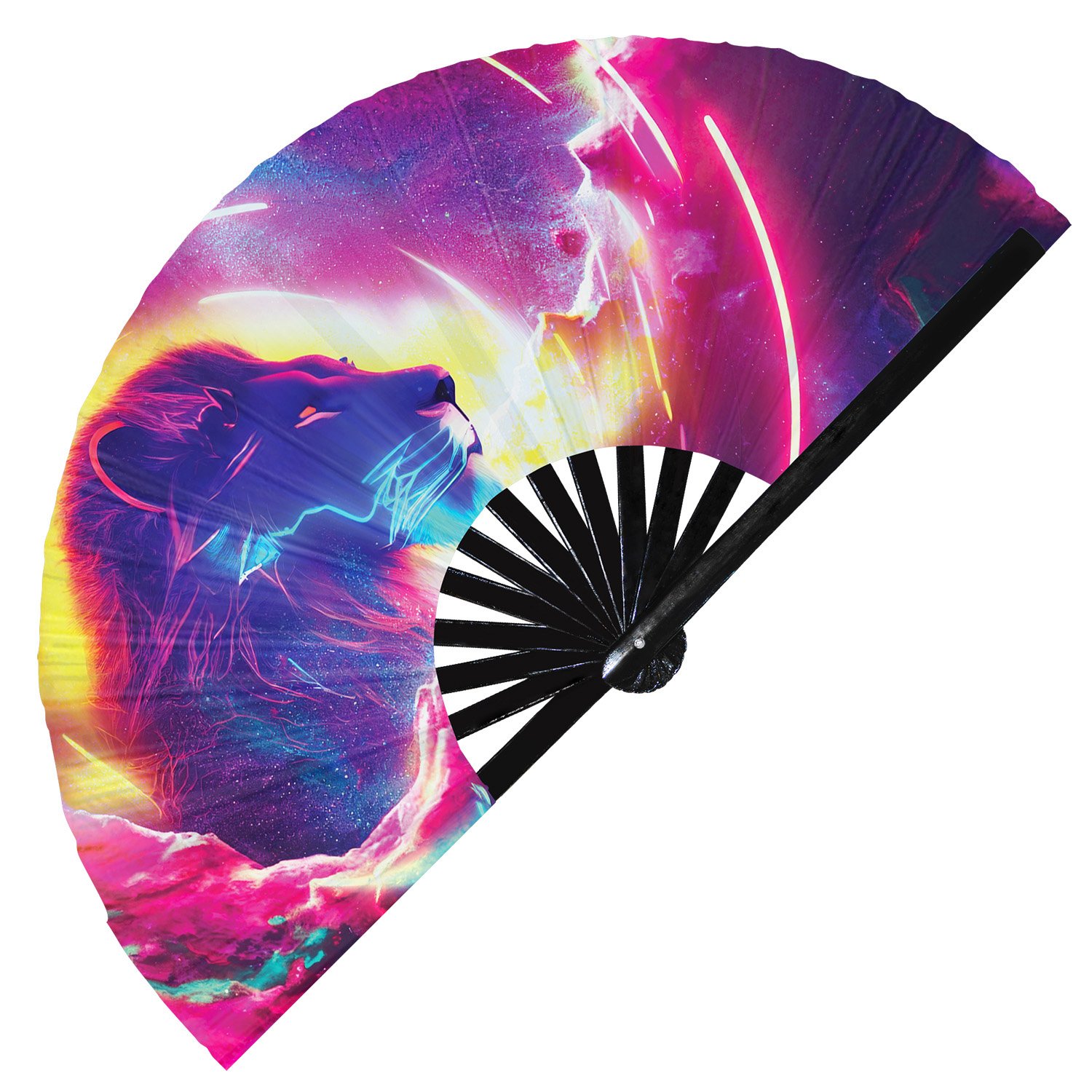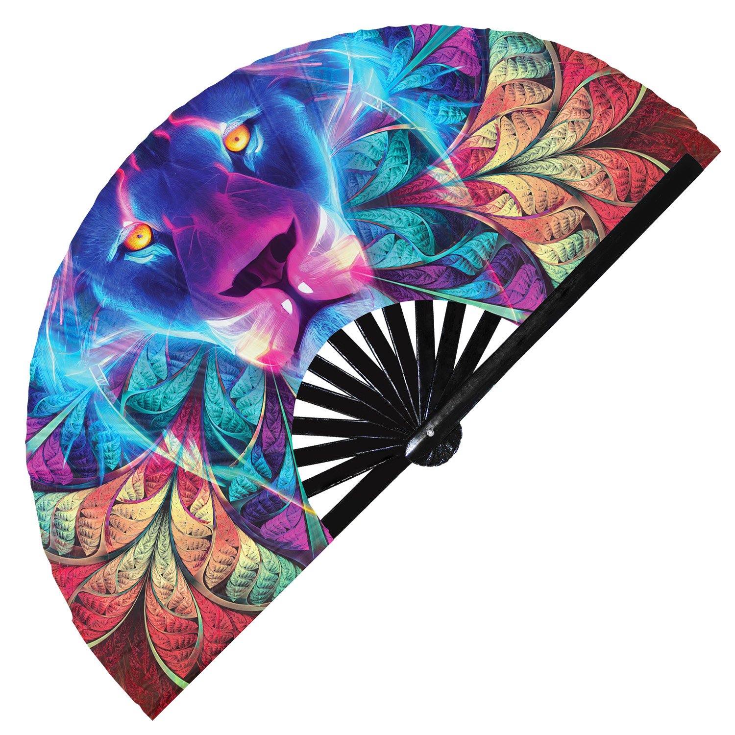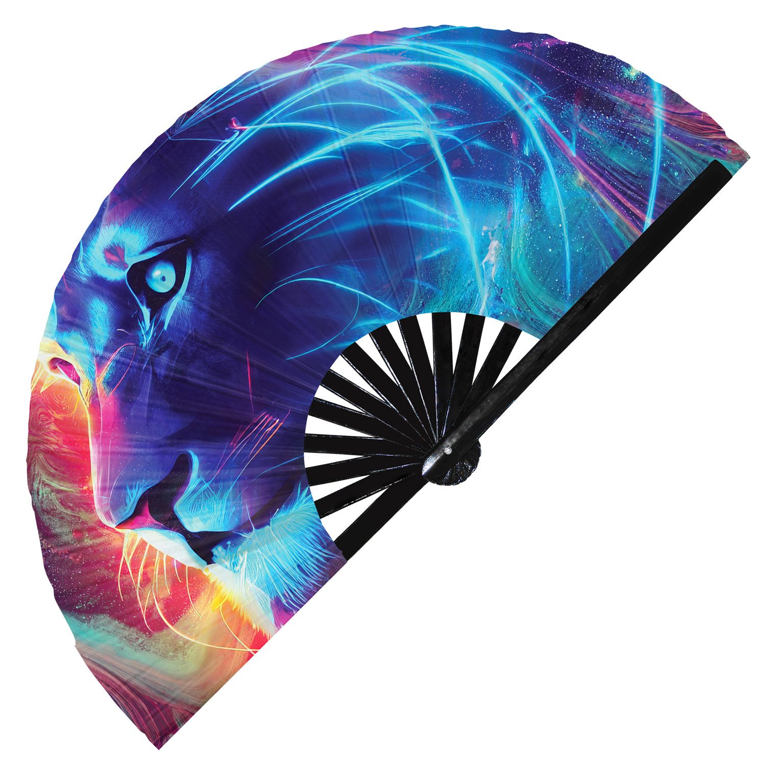 Neon Trippy Lion Psychedelic Rainbow – Clack Folding Rave & Festival Hand Fan
