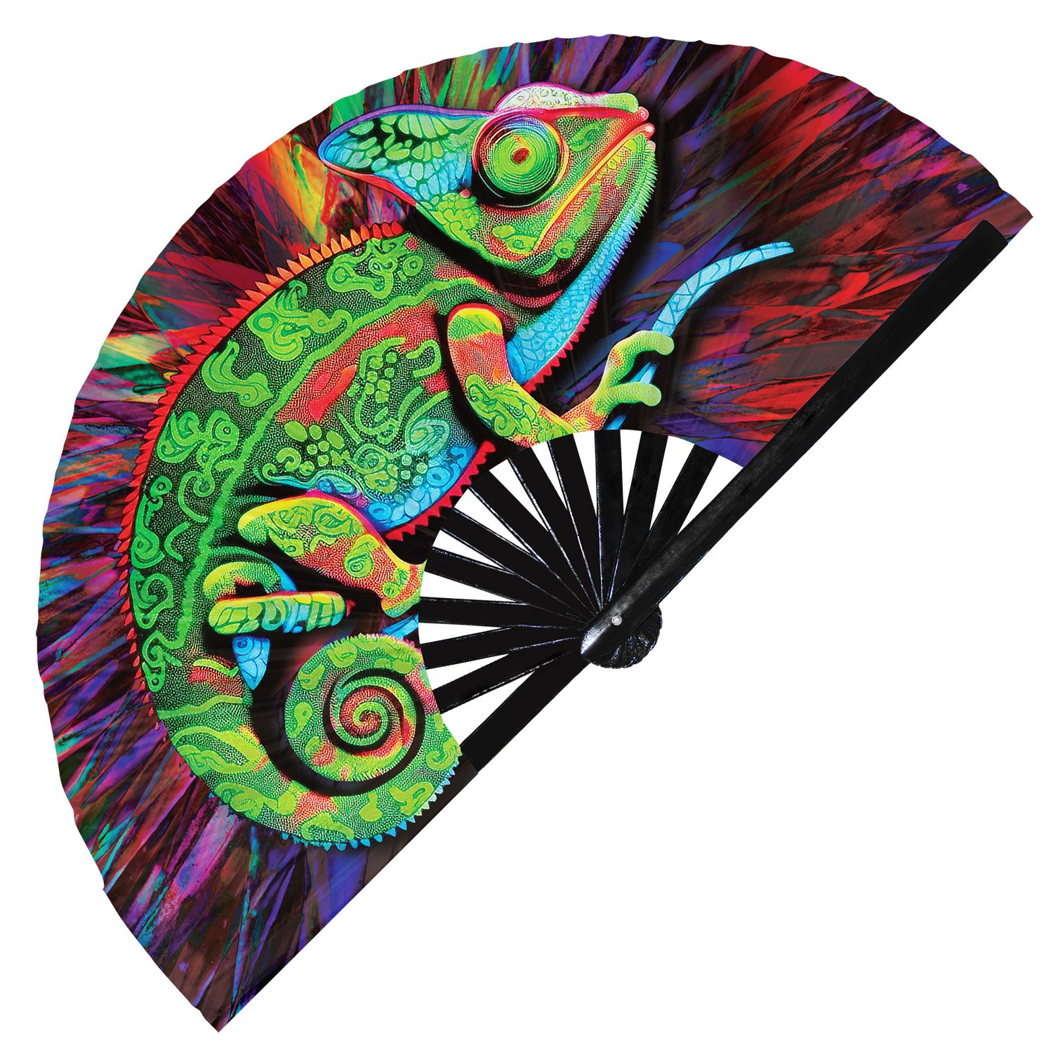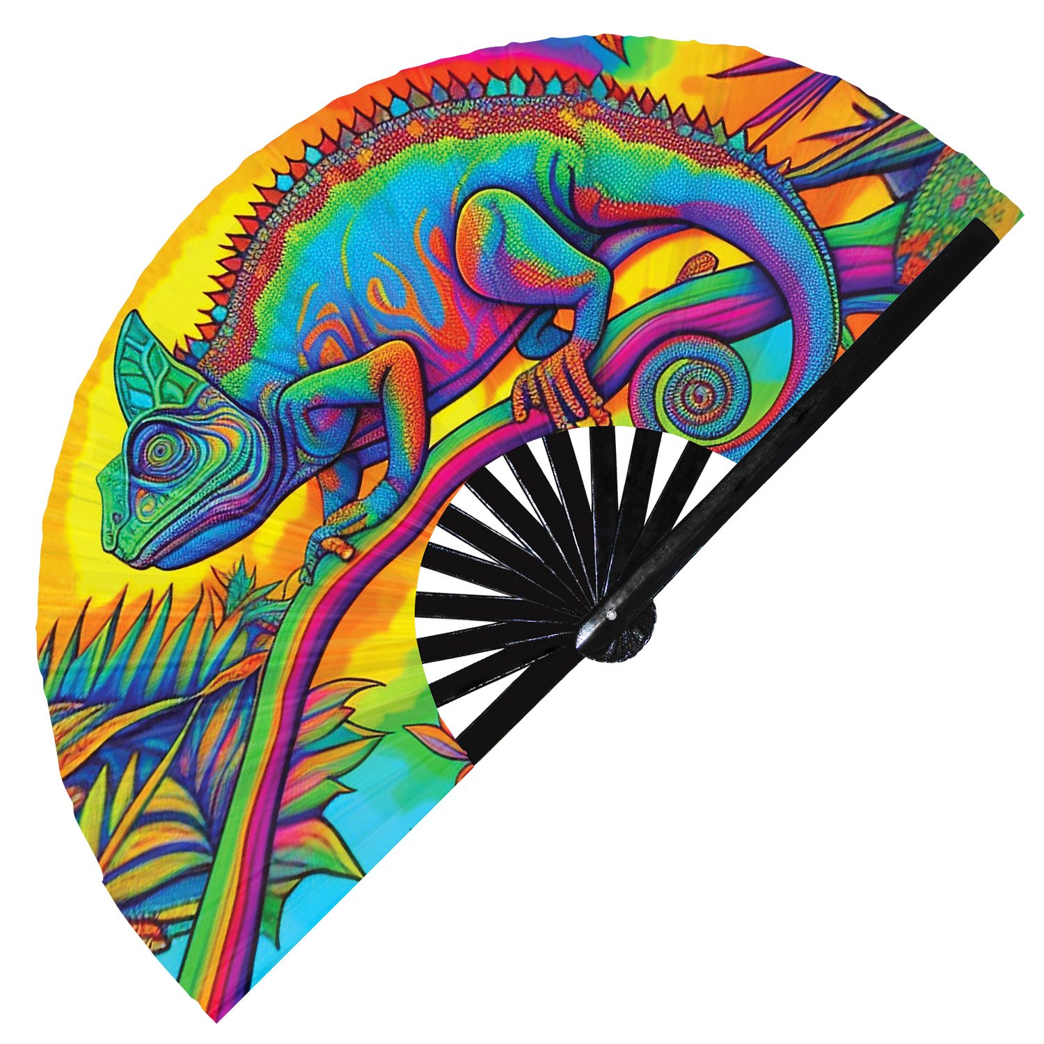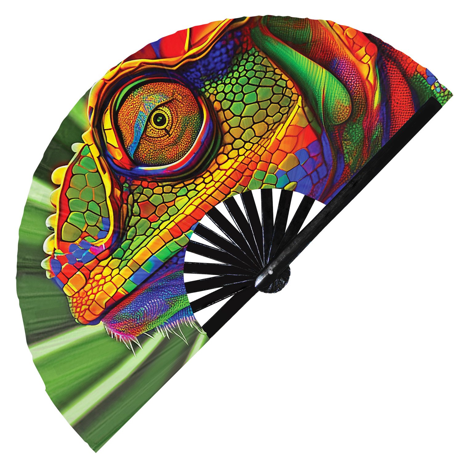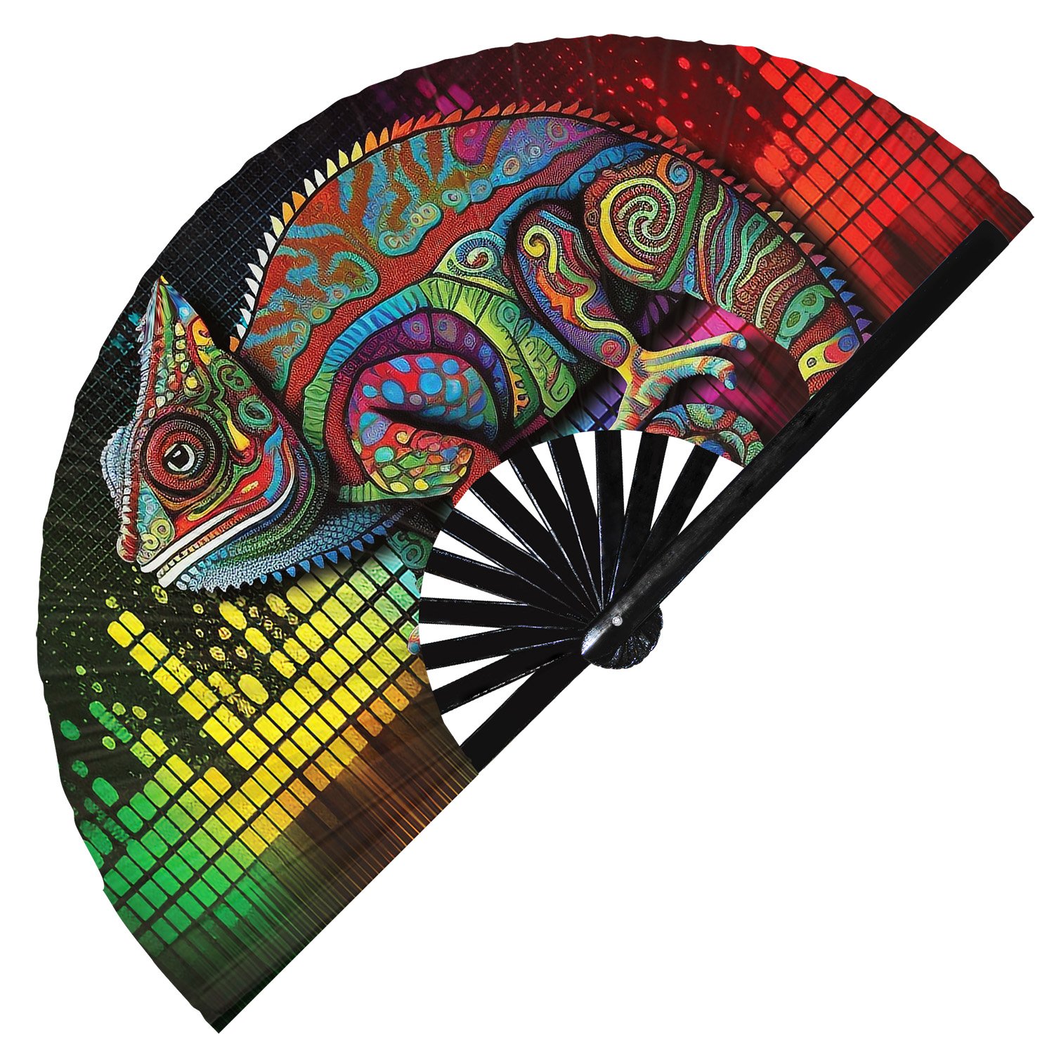 Rainbow Chameleon Trippy Pyschedelic - Clack Folding Rave & Festival Hand Fan