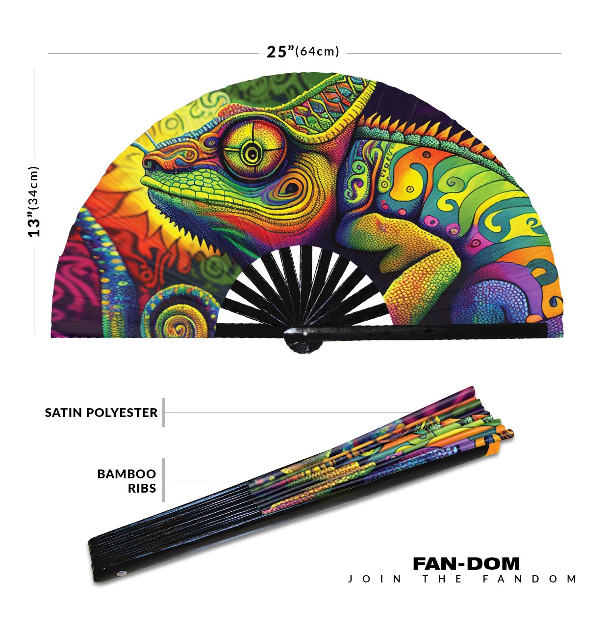 Rainbow Chameleon Trippy Pyschedelic – Clack Folding Rave & Festival Hand Fan