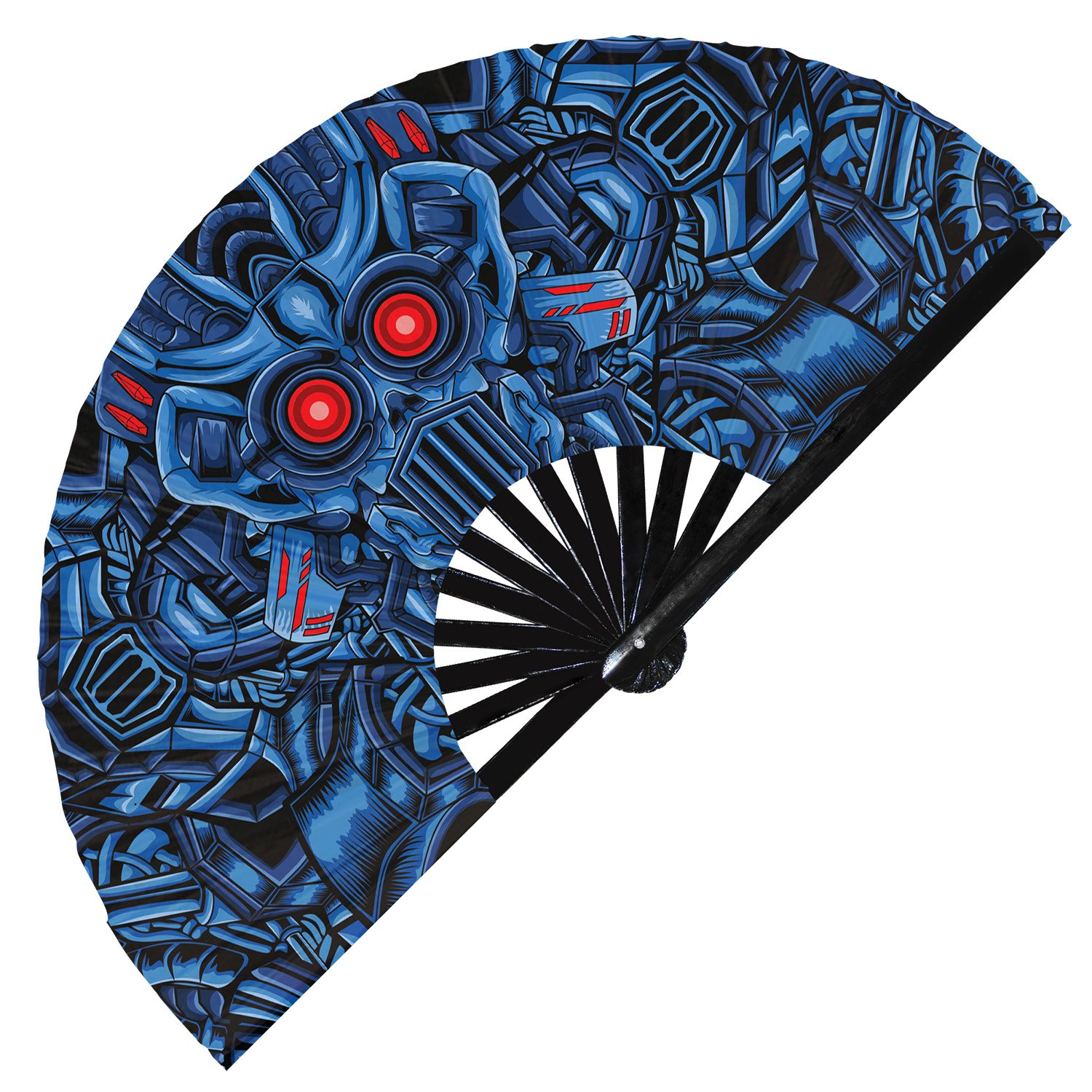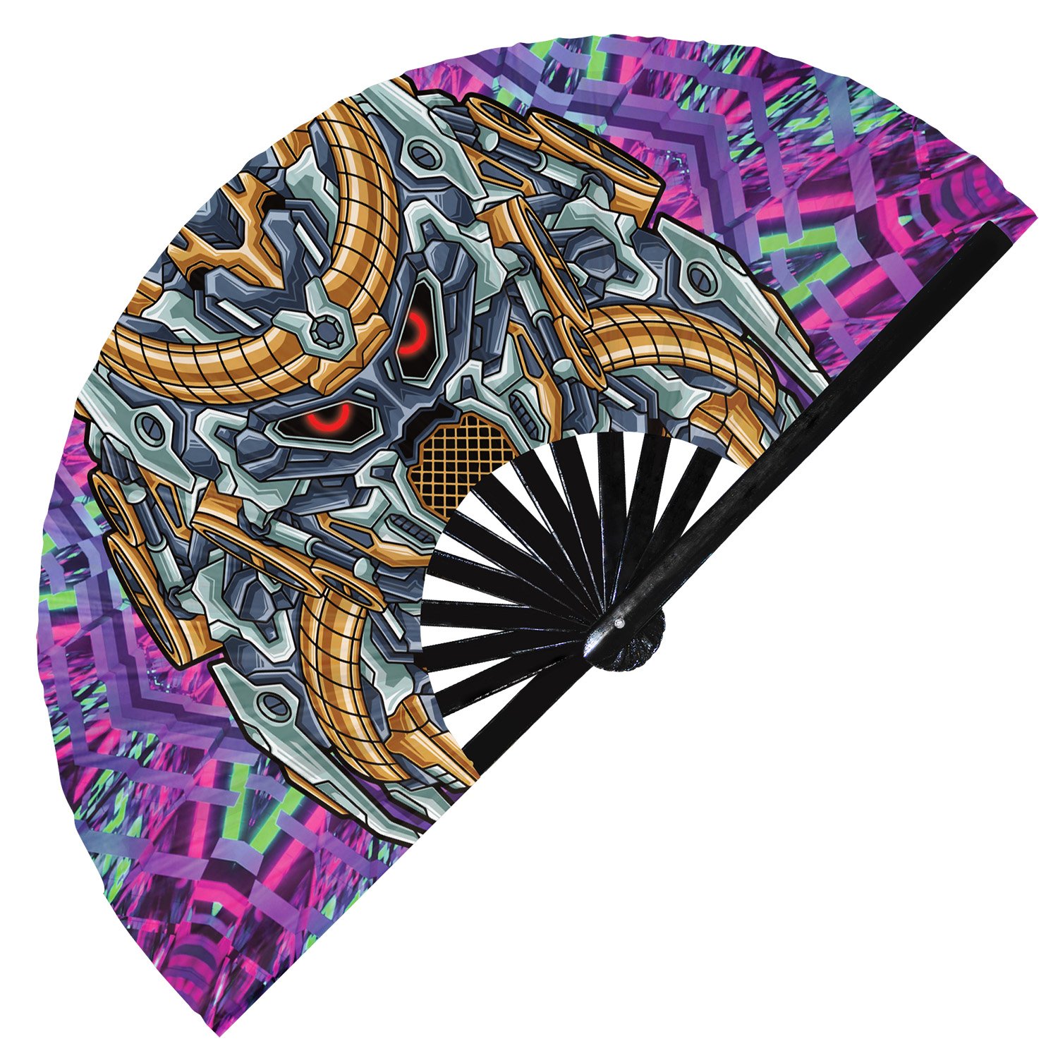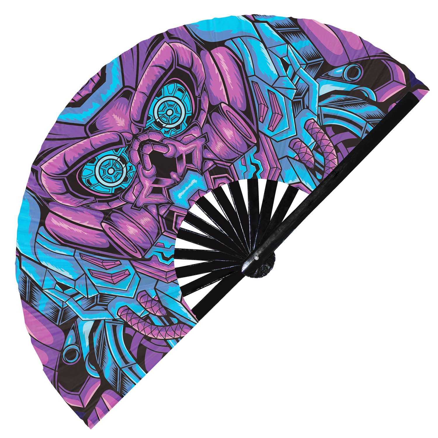 Robot Mecha Colorful Head Futuristic Techno – Clack Folding Rave & Festival Hand Fan