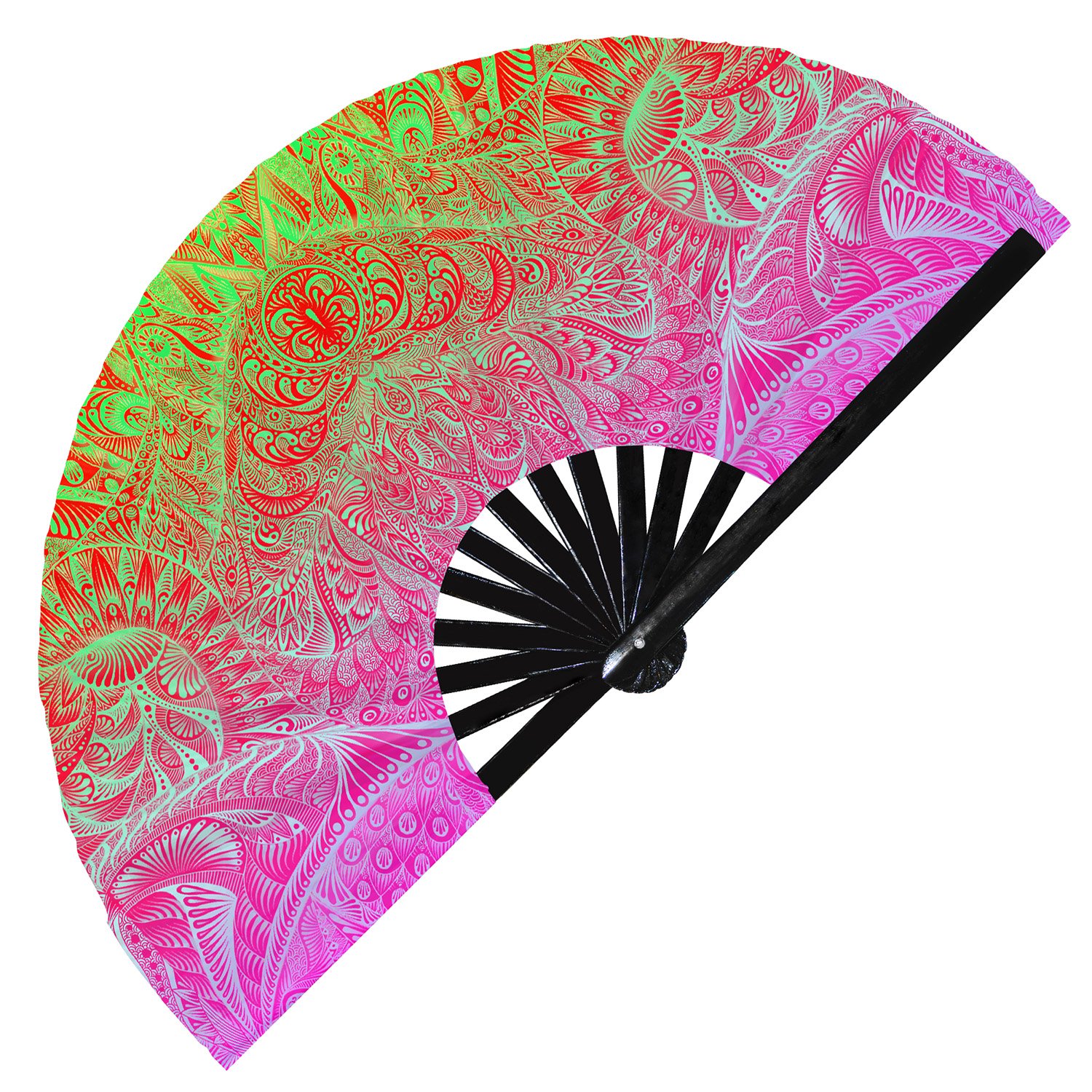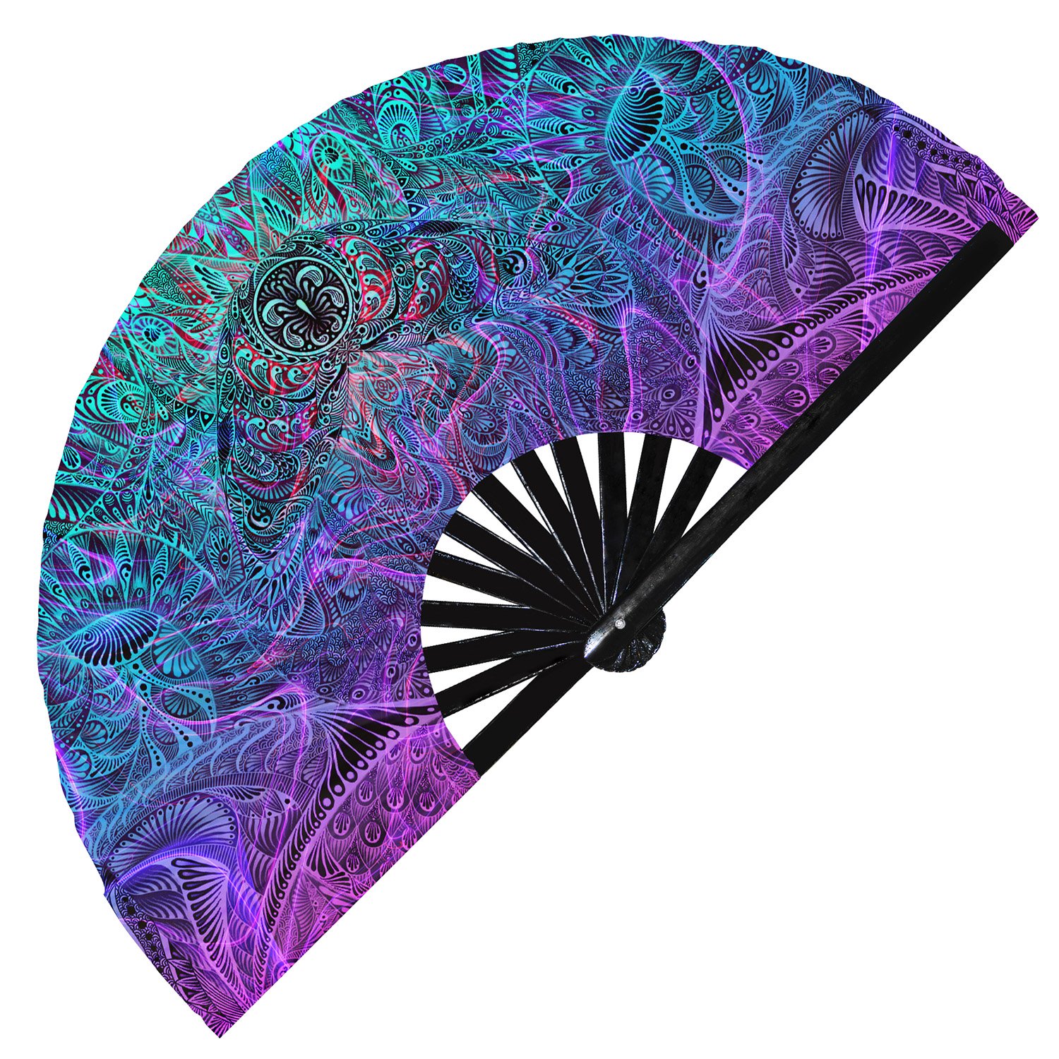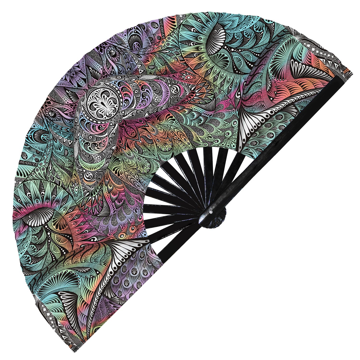 Tribal Manta Ray Illustration Ethnic Psychedelic Art – Clack Folding Rave & Festival Hand Fan